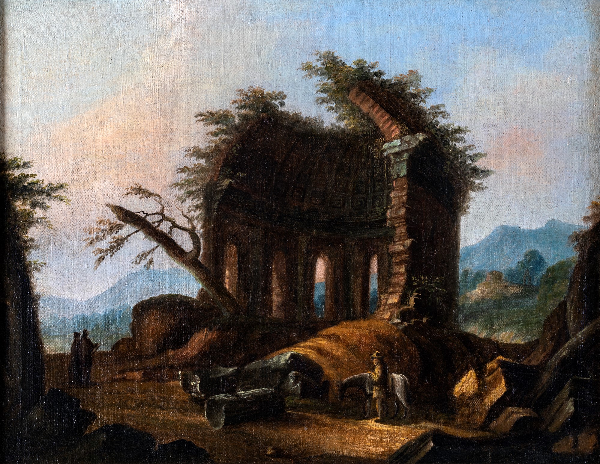 Pittore del XIX secolo - Paesaggio con i resti del tempio di Minerva Medica -...