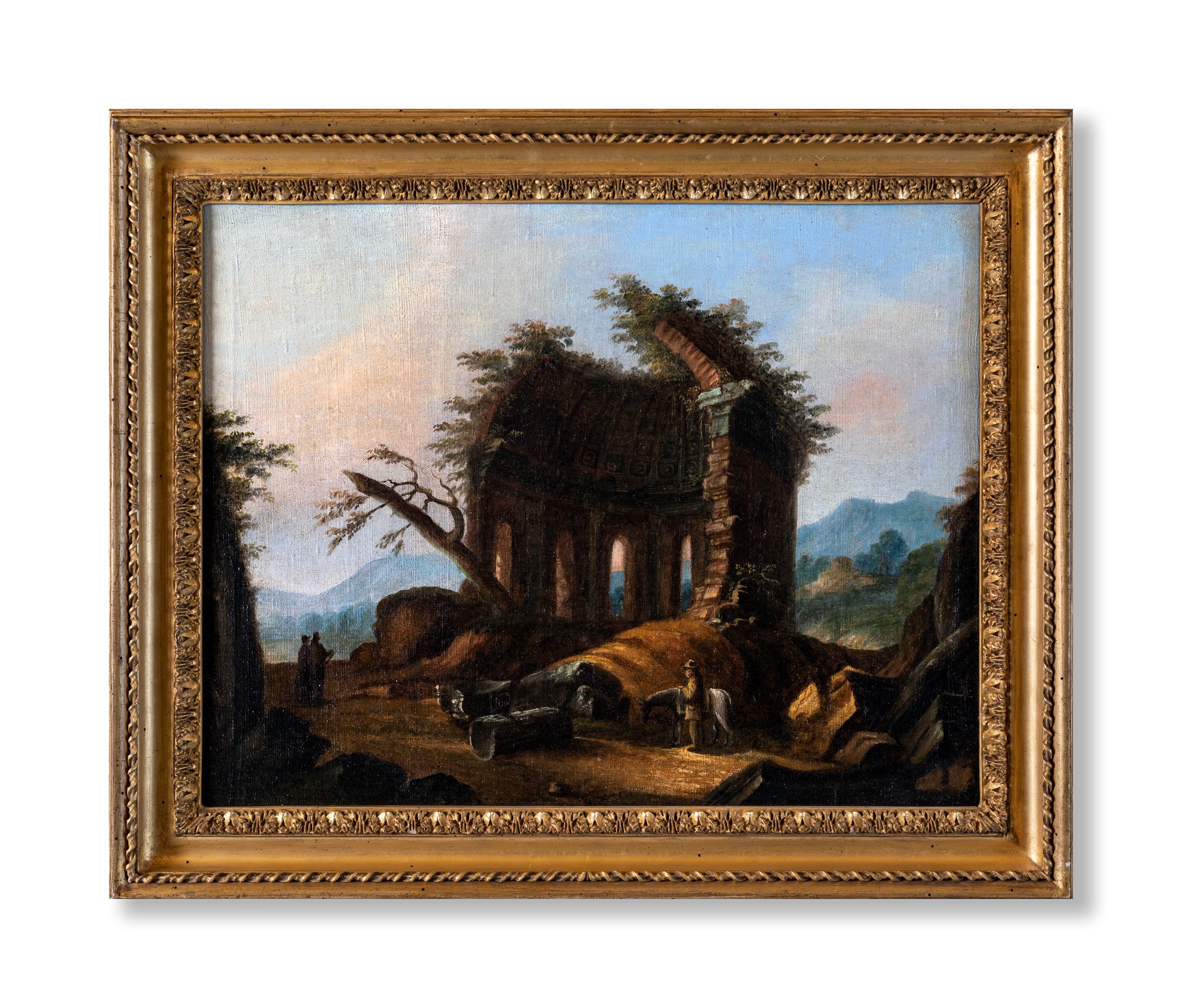 Pittore del XIX secolo - Paesaggio con i resti del tempio di Minerva Medica - olio su tela - cm 52x63
