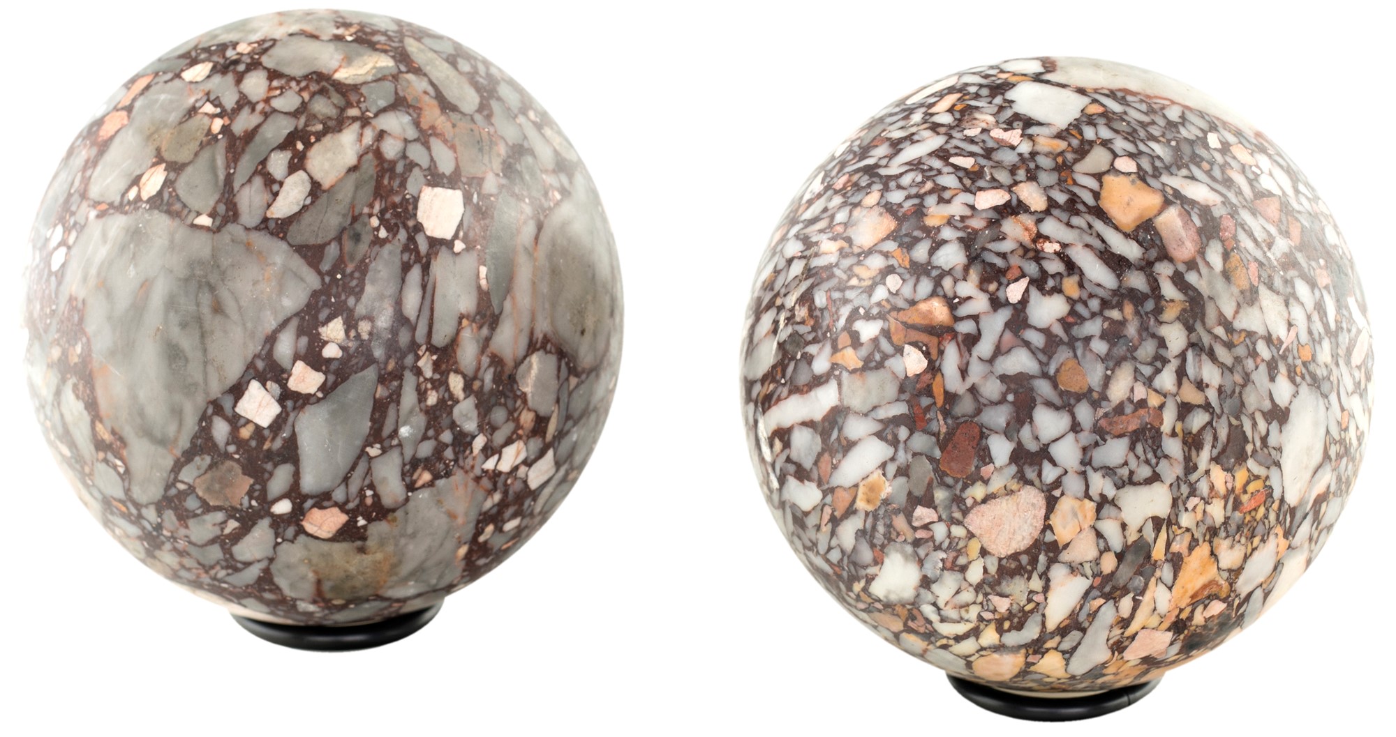 Due antiche sfere in breccia semesanto - Rotture - diametro cm 12 ca