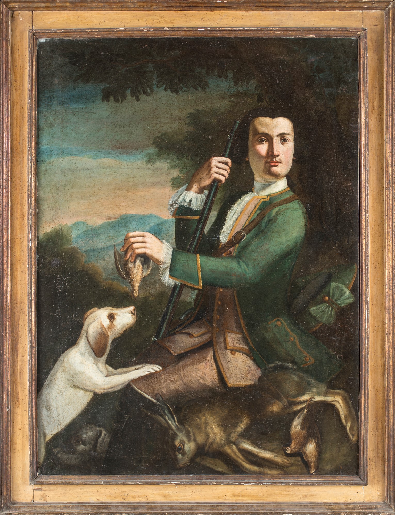 Pittore del XVIII secolo - Cacciatore - olio su tela - cm 133x96
