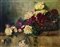 Pittore fine del XIX secolo- Natura morta di fiori e frutta - Firma non decifrabile in basso a destra. - olio su tela - cm 40x48
