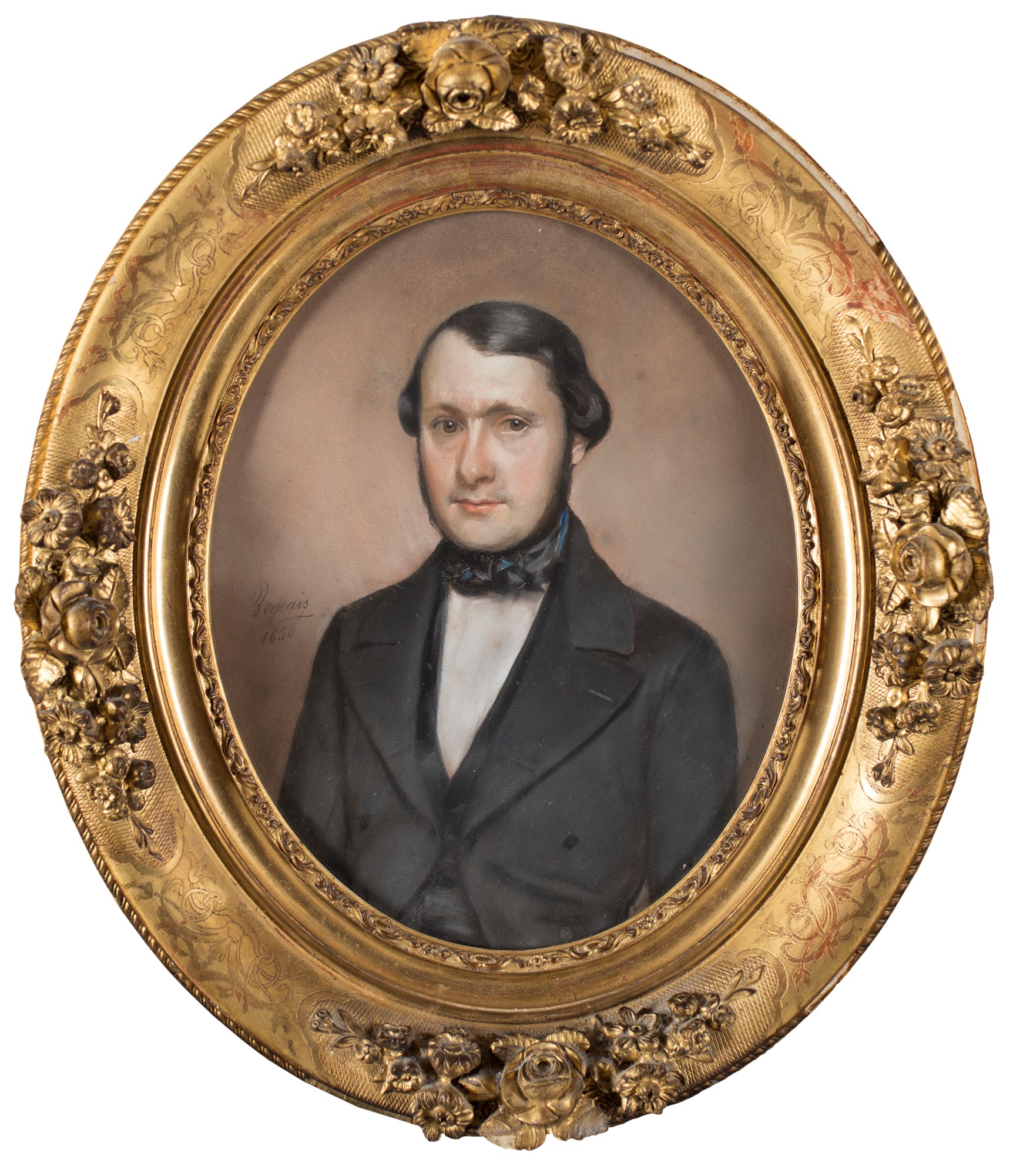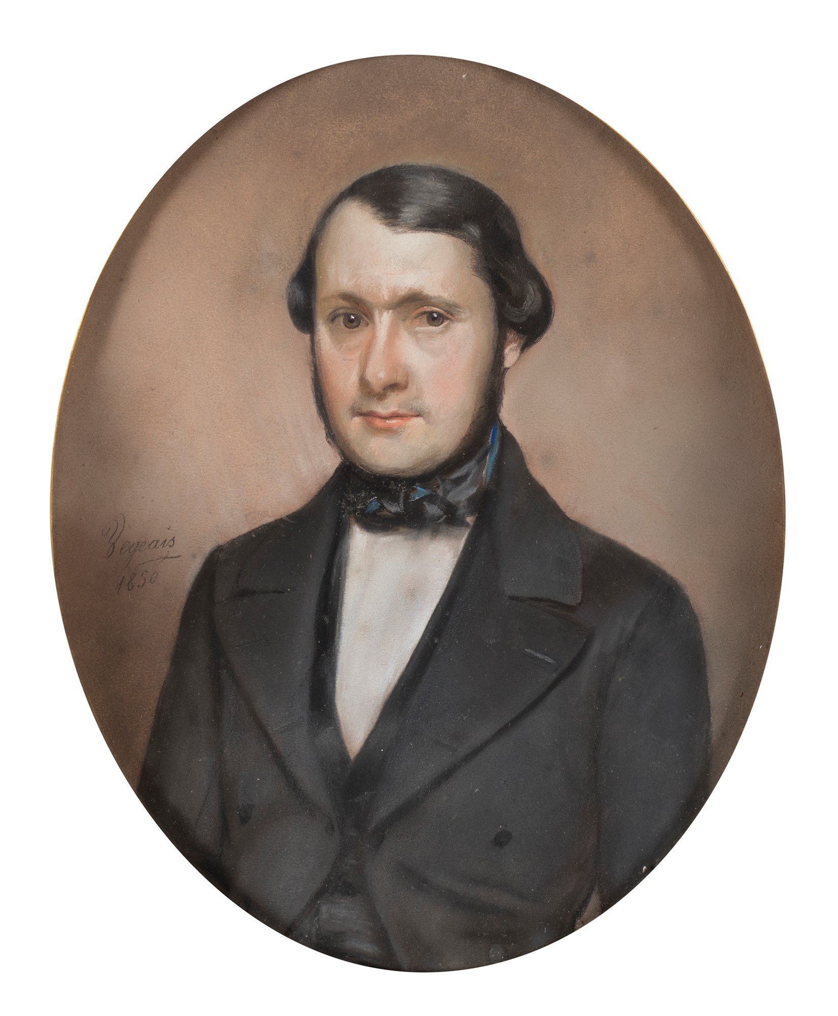 Anonimo fine XIX secolo - Ritratto di giovane gentiluomo - Firmato e datato a sinistra: Begeais 1850 - pastelli su carta - cm 28x22 (ovale)