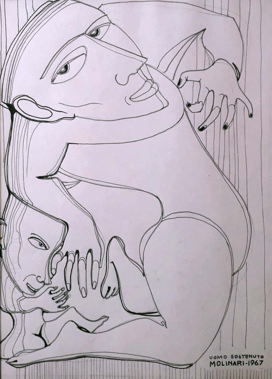 MOLINARI BRUNO milano (milano) 1933 Uomo sostenuto 1967 China su carta...