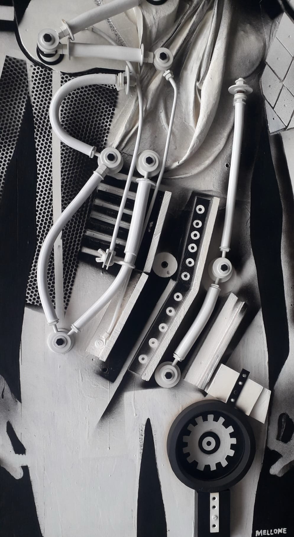 MELLONE DARIO Bologna (Bo) 1929 Uomo Cyber 1975 Assemblaggi e nitro applicati...