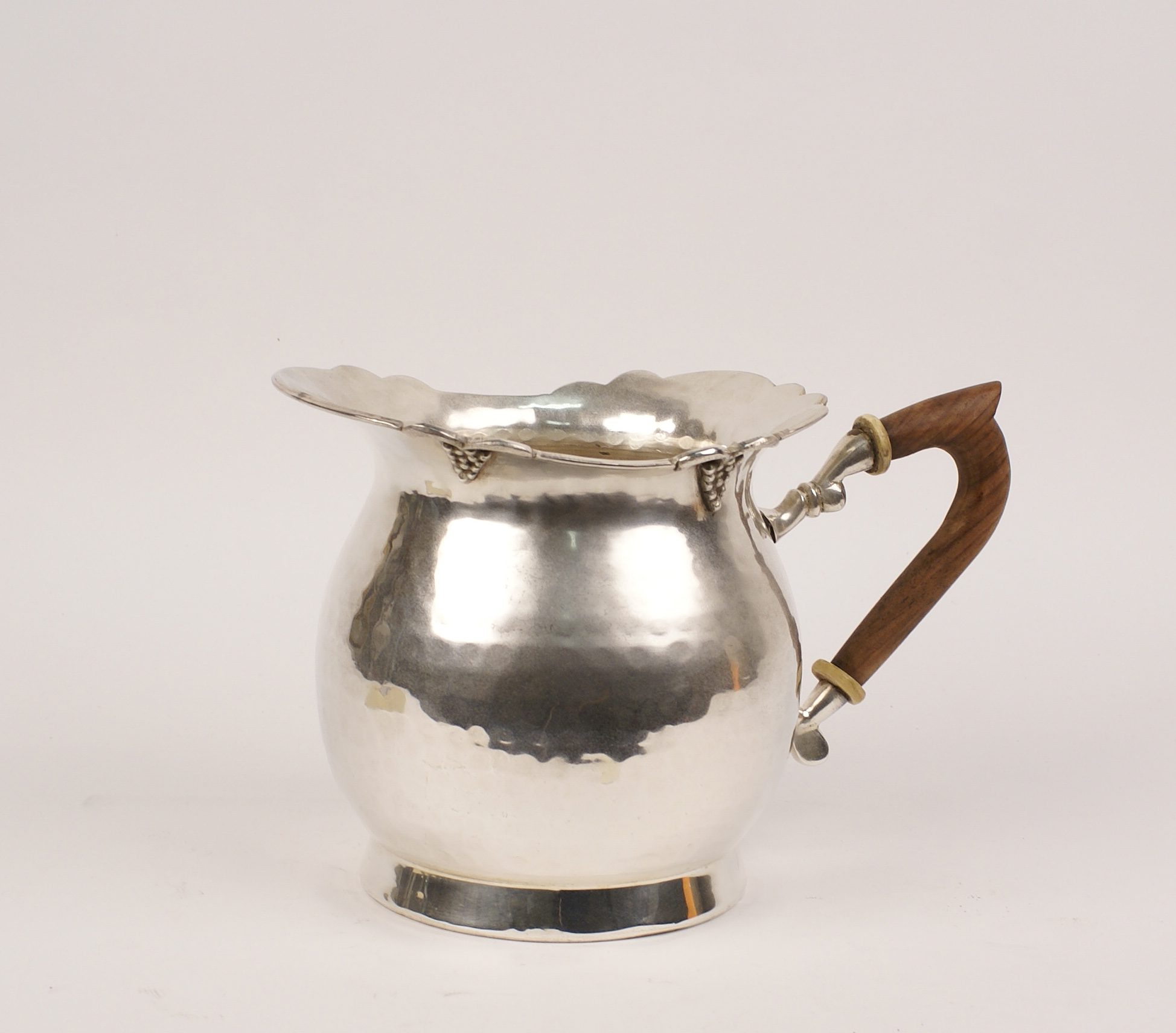 CARAFFA IN METALLO CON MANICO IN LEGNO h. 16,5 cm.