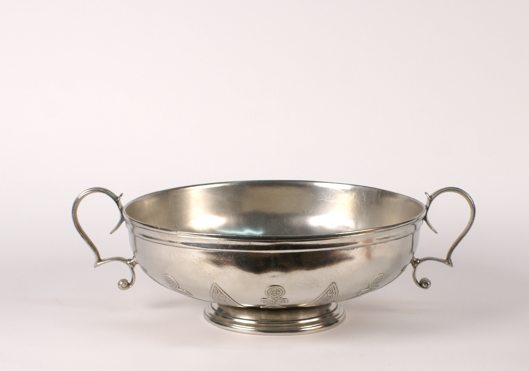 CENTROTAVOLA IN METALLO inizi del XX Sec. di forma circolare con due manici a...