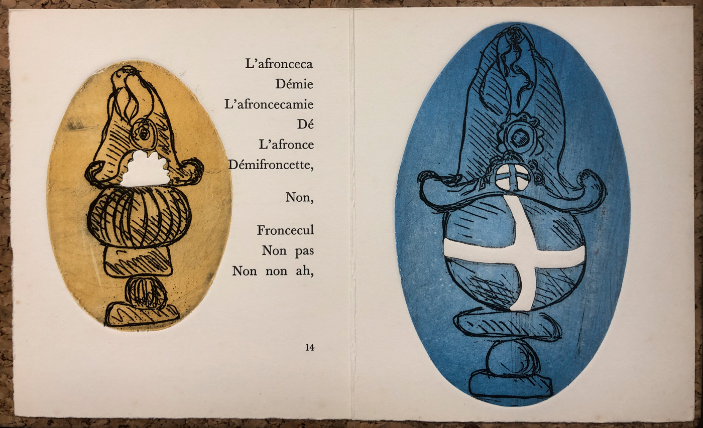 Splendida edizione con poema di André Pieyre de Mandriargues illustrato da 15 acqueforti di Enrico Baj
