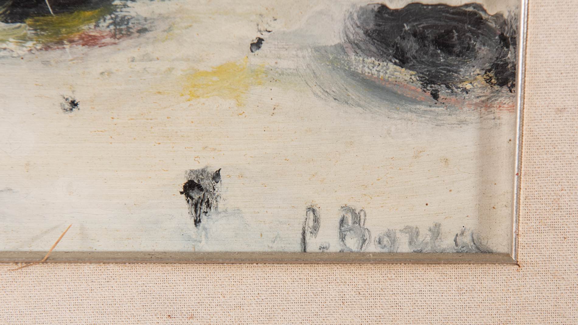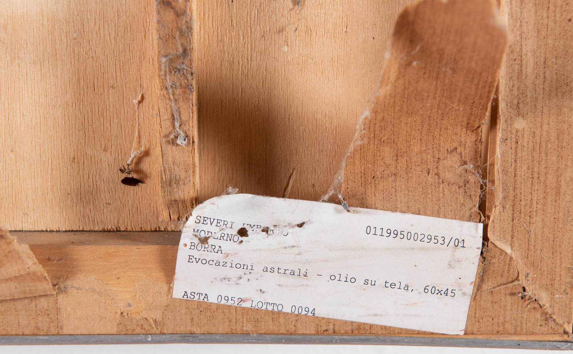 Pompeo Borra (Milano 1898 - 1973), “Evocazioni Astrali”. - Olio su tela, firmato in basso a destra P. Borra, titolo al retro su telaio ‘Evocazioni astrali’, H cm 60x45 Reca etichetta al retro con provenienza Collezione Severi.