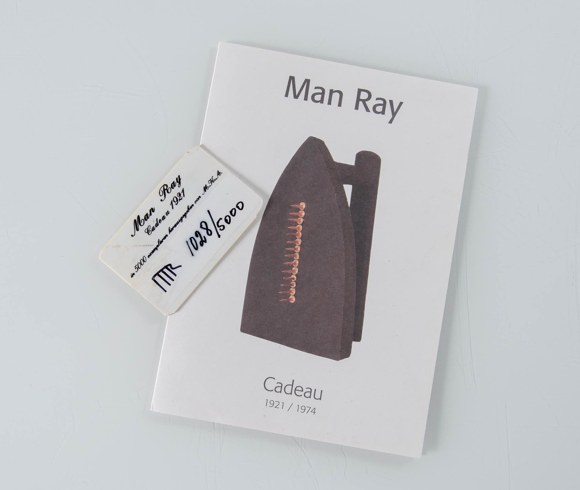Man Ray (Filadelfia 1890 - Parigi 1976), “Cadeau”, 1921. - Scultura/multiplo, titolo, firma e tiratura sull’impugnatura del ferro da stiro, esemplare 1028/5000, cm 10x16.5x10 Bibliografia di riferimento: Opera citata nel volume Object de mon affection, pubblicato da Philippe Sers - Parigi 1983. Editore Luciano Anselmino - Torino; realizzazione Giorgio Barutti - Venezia; Fusioni Fonderie di Merano - Venezia; tiratura in 5000 esemplari, ciascuno corredato da un certificato numerato e firmato a firma Arturo Schwarz.