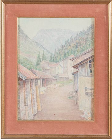 Carlo Stoppani (Pittore Bolognese del XIX secolo), “Strada di montagna”, 1929. - Tecnica mista su carta, firmato e datato in basso a sinistra Carlo Stoppani 1929 VII, H cm 38x28