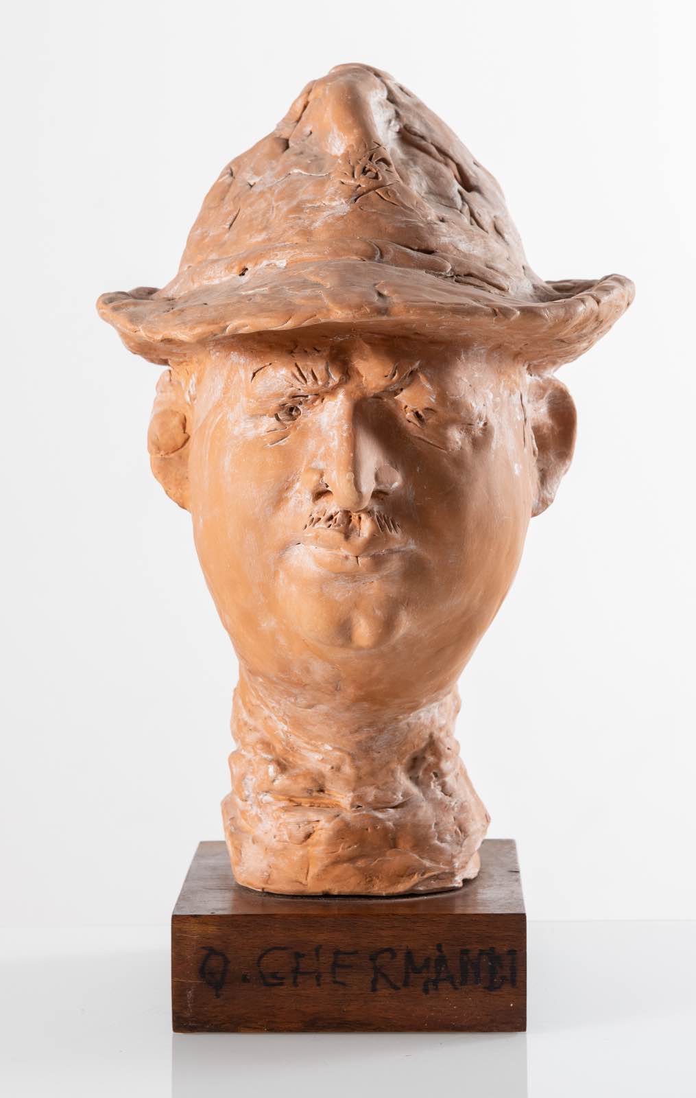 Quinto Ghermandi (Crevalcore 1916 - San Lazzaro di Savena 1994), “Volto”. - Scultura in terracotta, firmata Q. Ghermandi, H cm 36