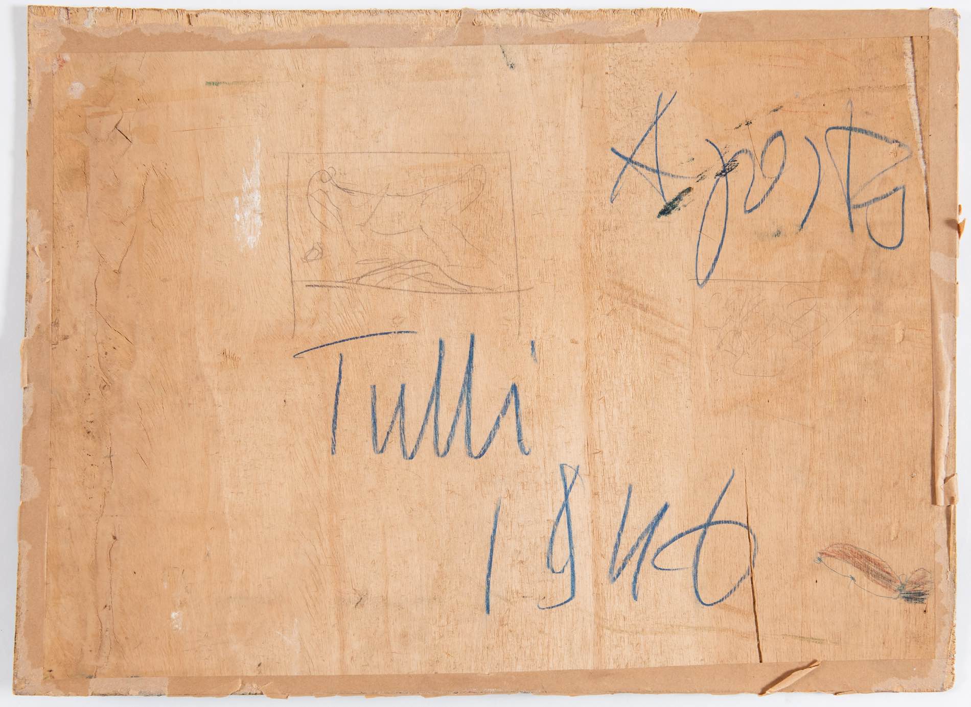 Wladimiro Tulli (Macerata 1922 - 2003), “Agosto”, 1945. - Olio su tavoletta, firmato e datato in basso a destra Tulli 45, al retro titolo firma e data e schizzi, H cm 32x43