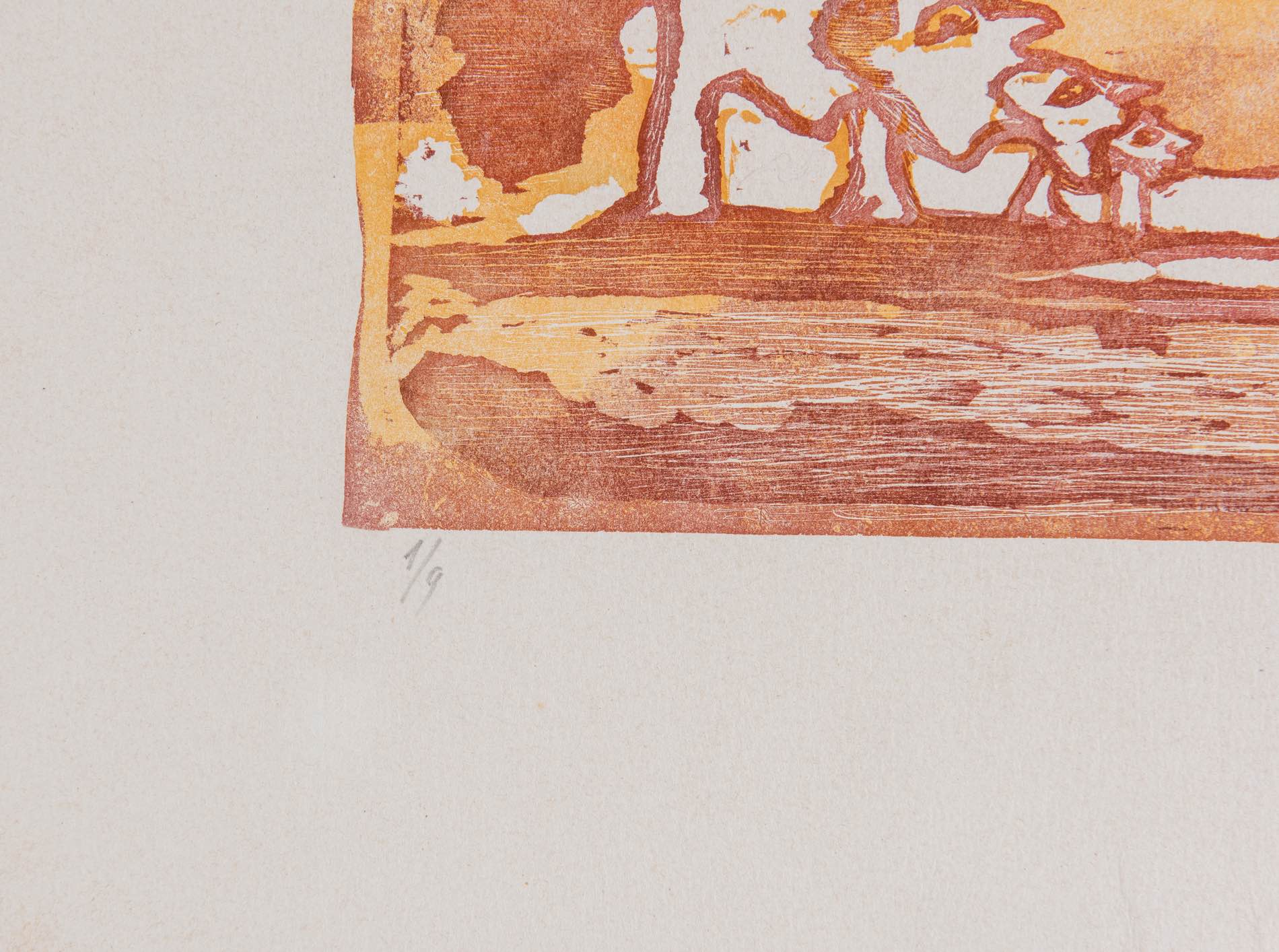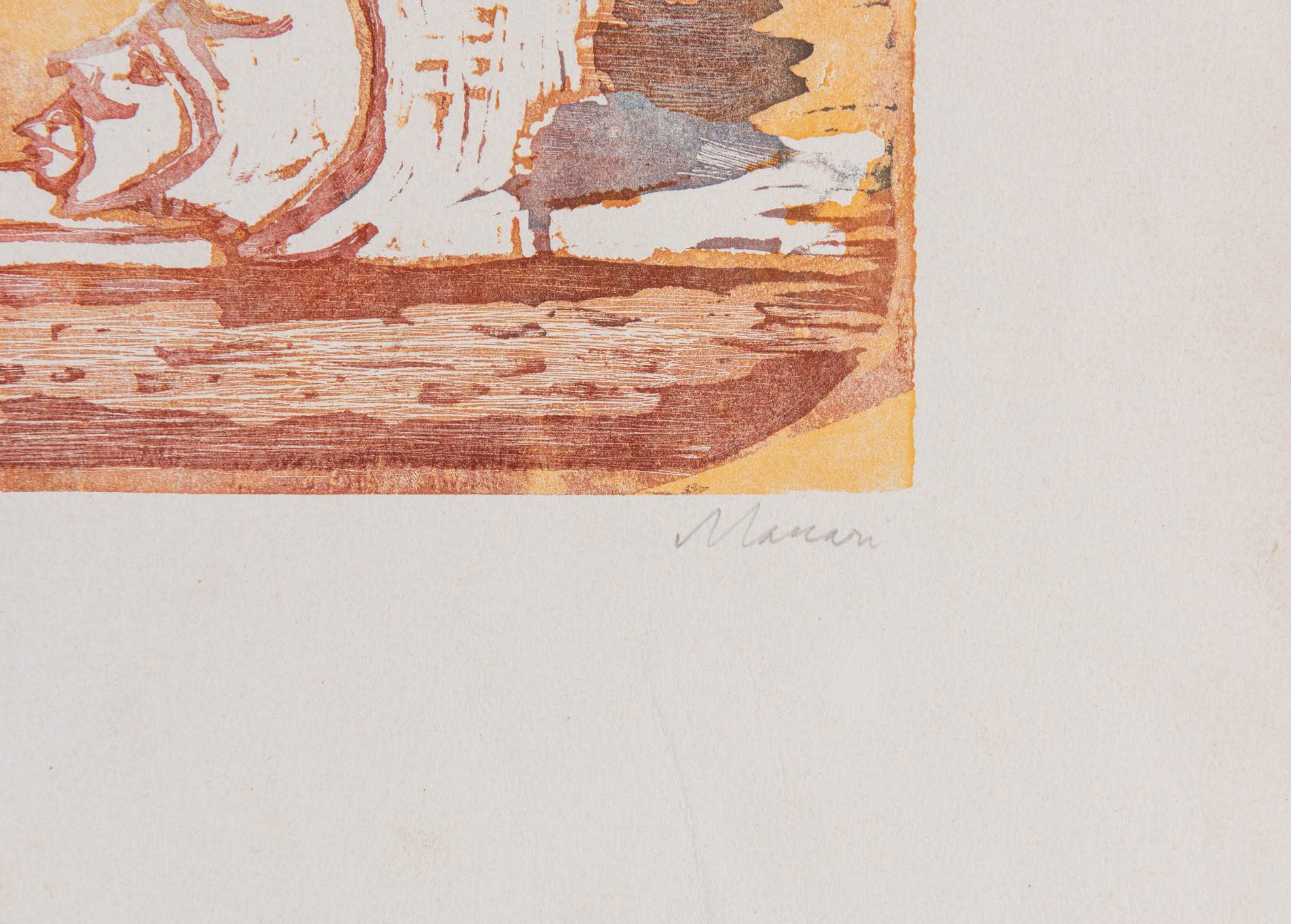 Mino Maccari (Siena 1898 - Roma 1989), “Senza titolo”. - Litografia a colori su carta, firmata in basso a destra Maccari, numero di tiratura in basso a sinistra 1/9, Foglio H cm 35x50 - Lastra H cm 18x34
