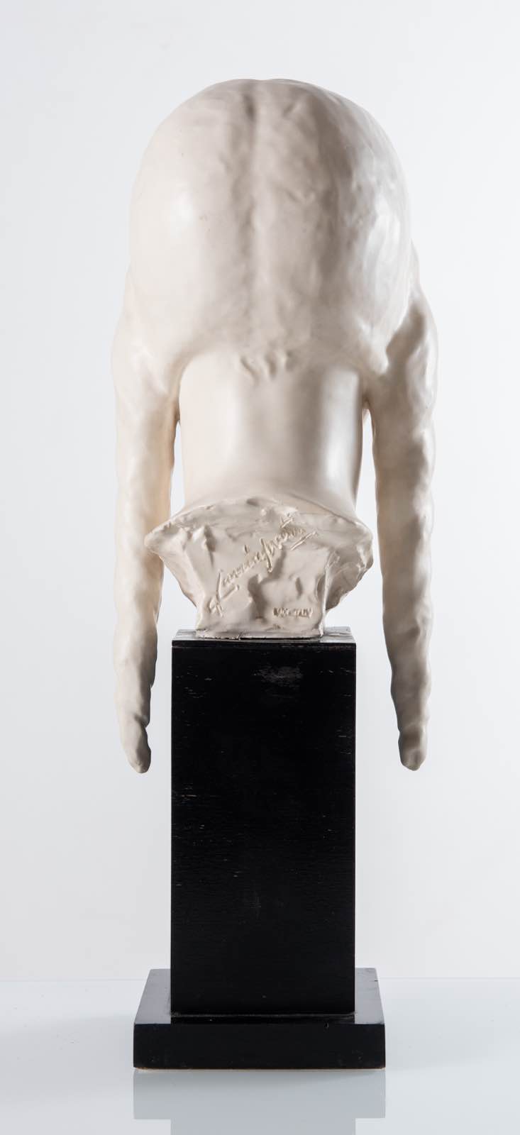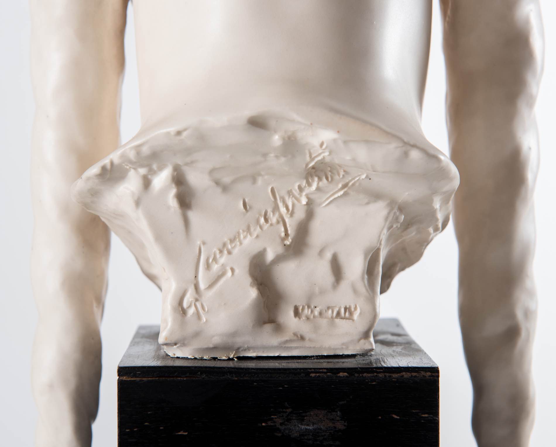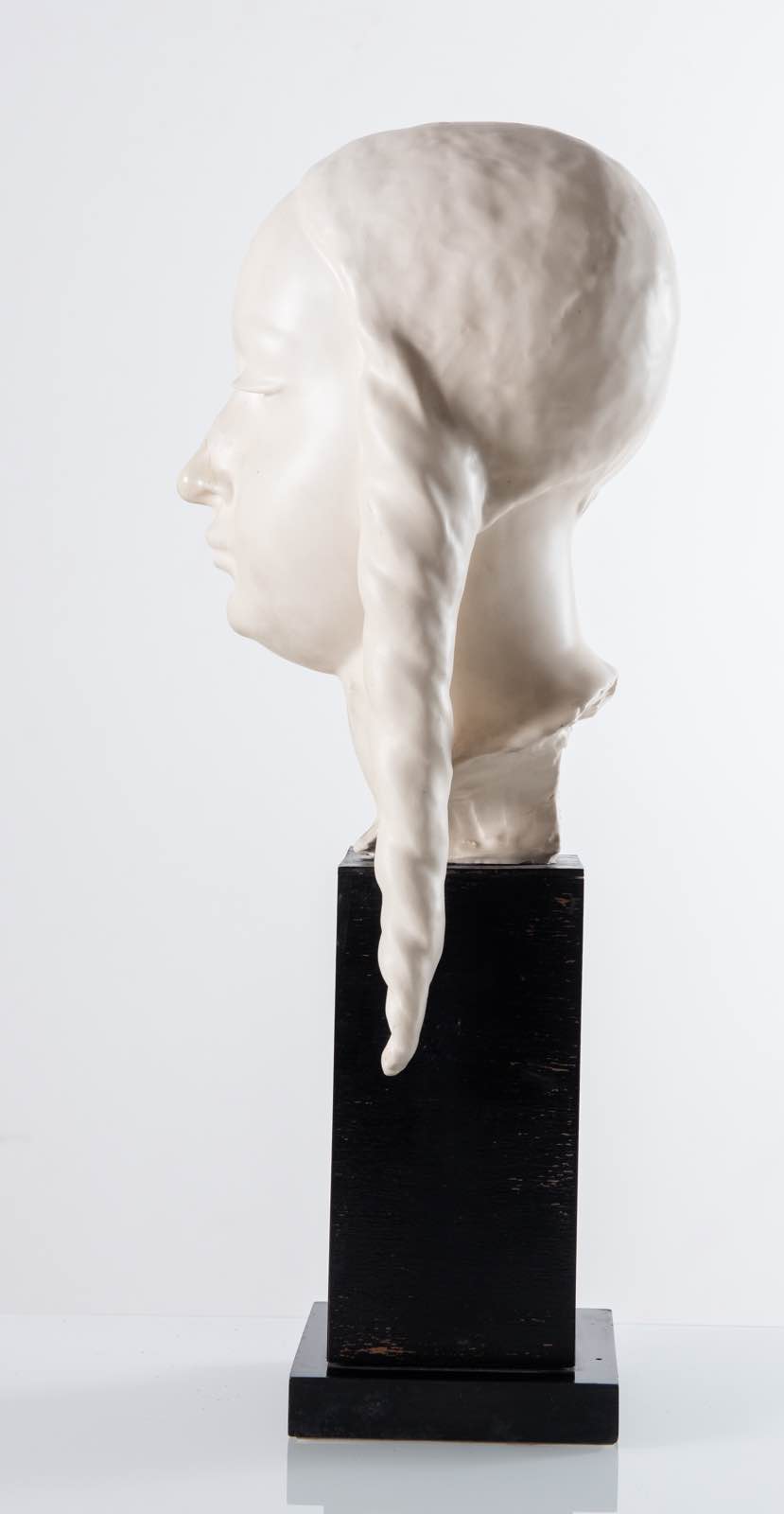 Guido Cacciapuoti (Napoli 1892 - Milano 1953), “Fanciulla con le trecce”. - Scultura in ceramica opaca a imitazione del marmo montata su base di legno, firmata G. Cacciapuoti/Made in Italy, H tot. cm 53 (difetti)