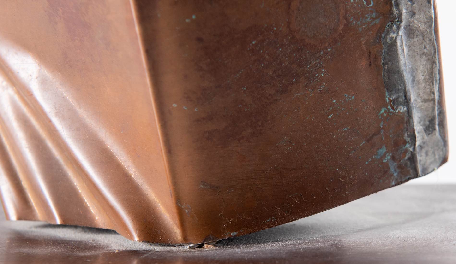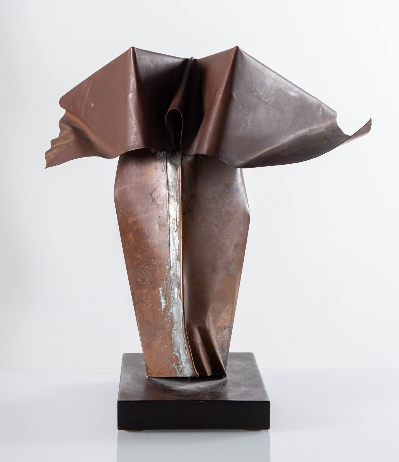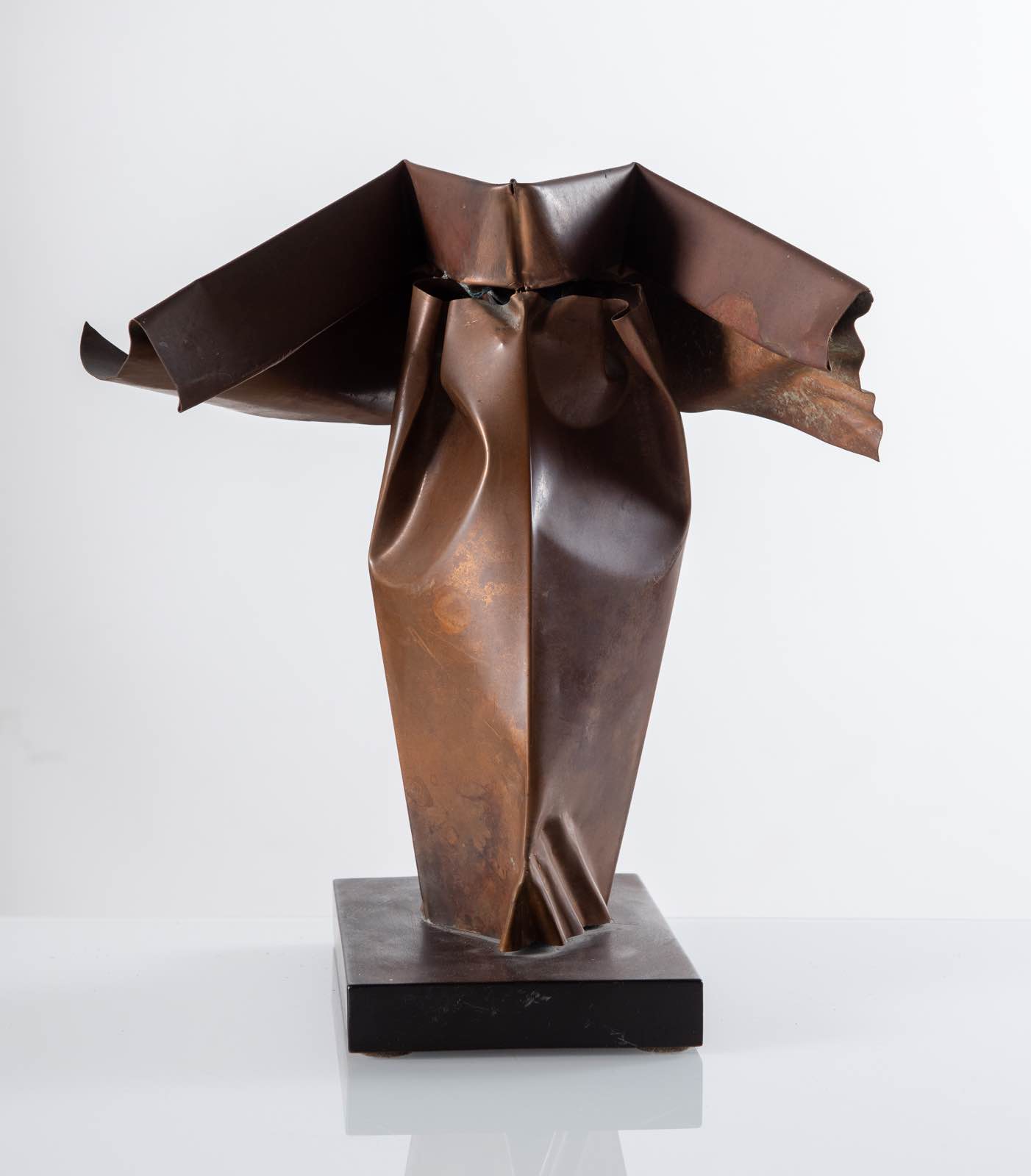 Gino Gamberini (XX secolo), “Monaca”, 1997. - Scultura in rame montata su base di legno, firmata e datata Gamberini 97, H cm 30 Opera accompagnata da certificato di autenticità a firma dell’artista.
