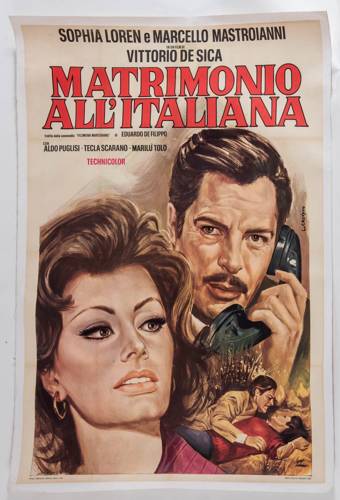 Manifesto “Matrimonio all’italiana”, 1964. - Carta applicata su tela, Prima Edizione Italiana 1964 - Printed in Italy by Rotograph - Roma, H cm 142x103