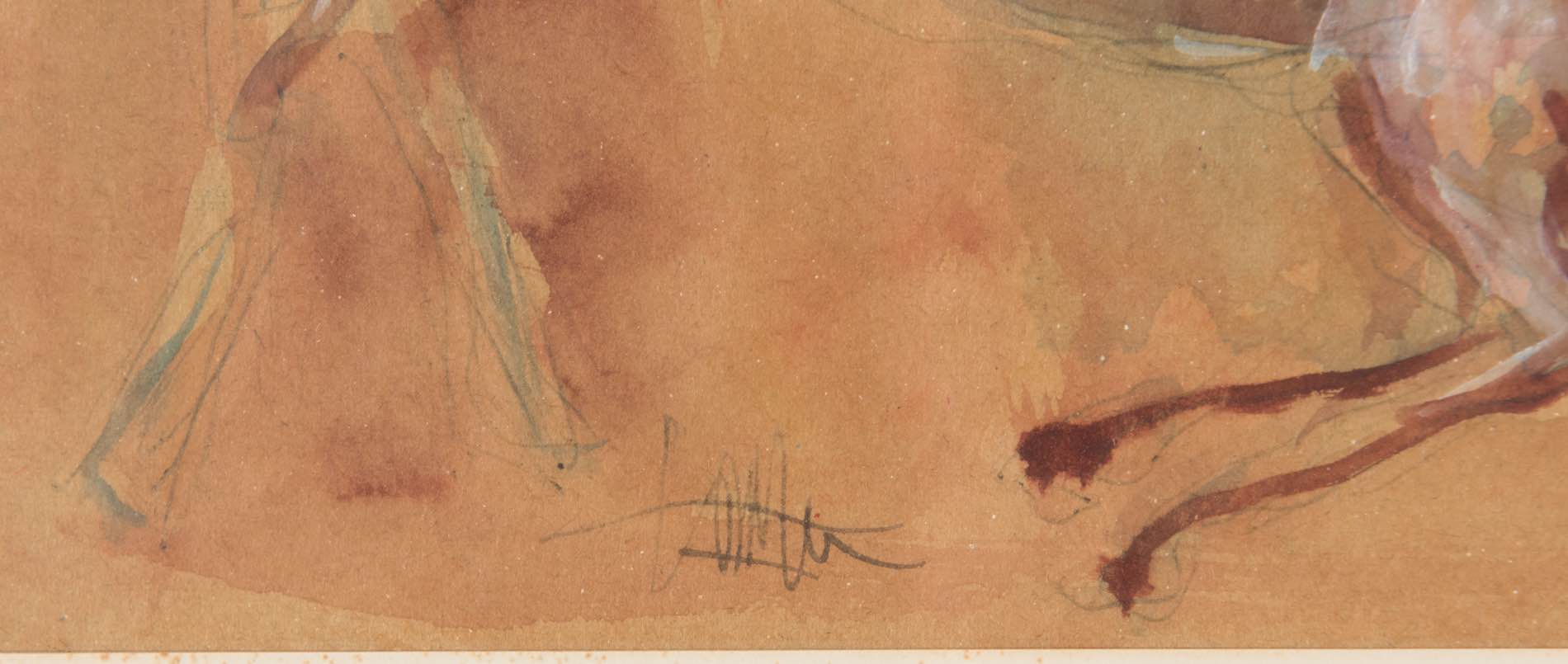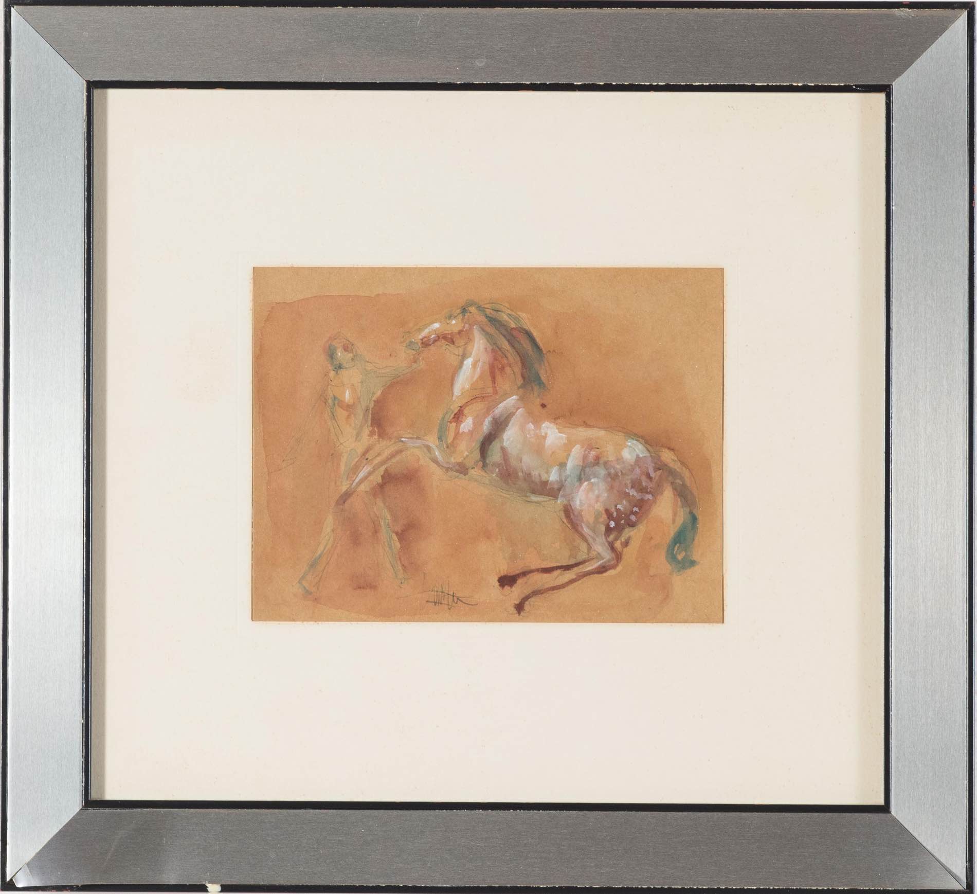 Cleto Tomba (Castel San Pietro Terme 1898 - Bologna 1987), “Figura e cavallo rampante”. - Acquerello e china su carta, firmato in basso al centro Tomba, H cm 15x20