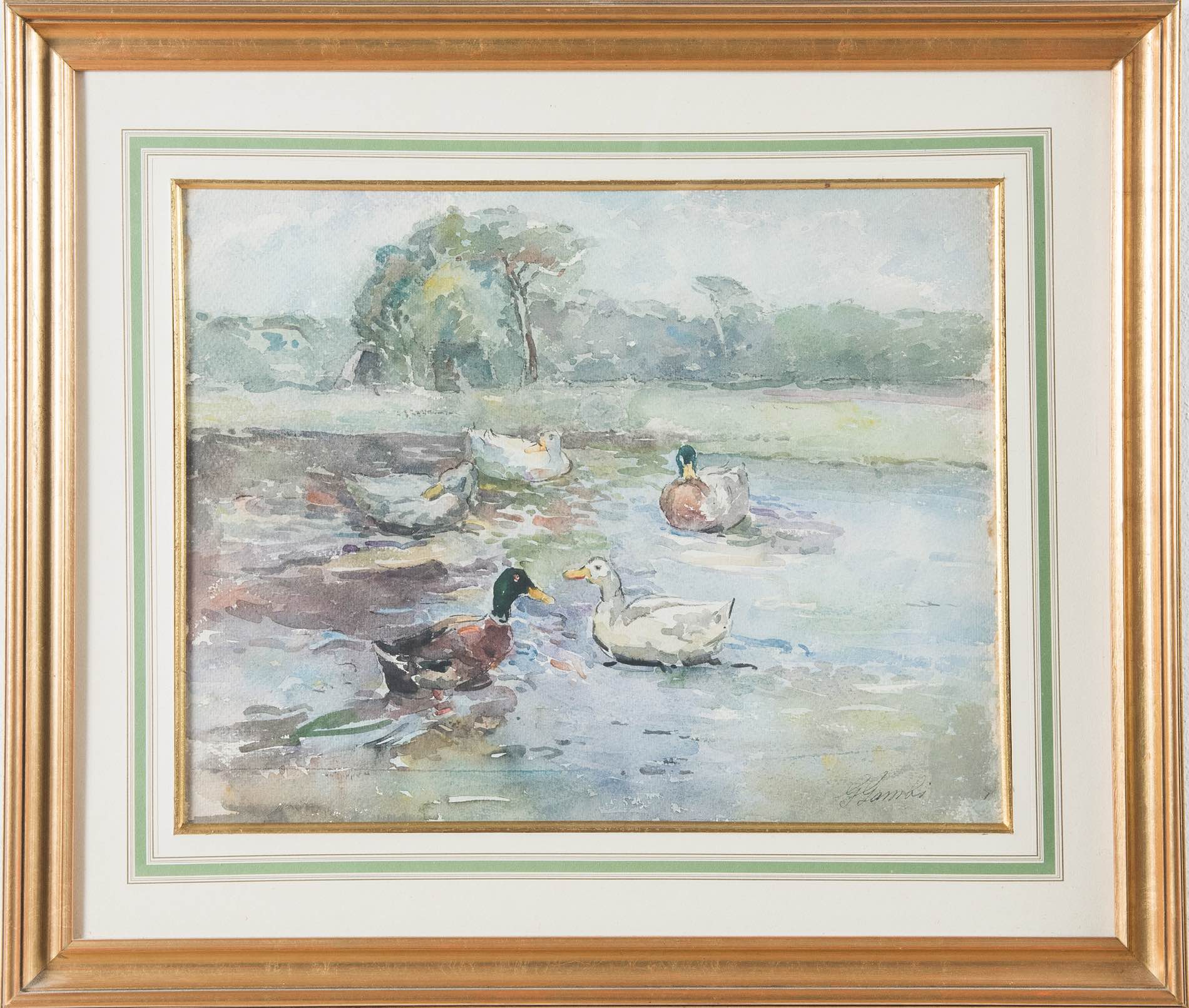 Gaspare Gambi (Ravenna 1889 - 1968), “Anatre nel lago”. - Acquerello su carta, firmato in basso a destra G. Gambi, H cm 36x46