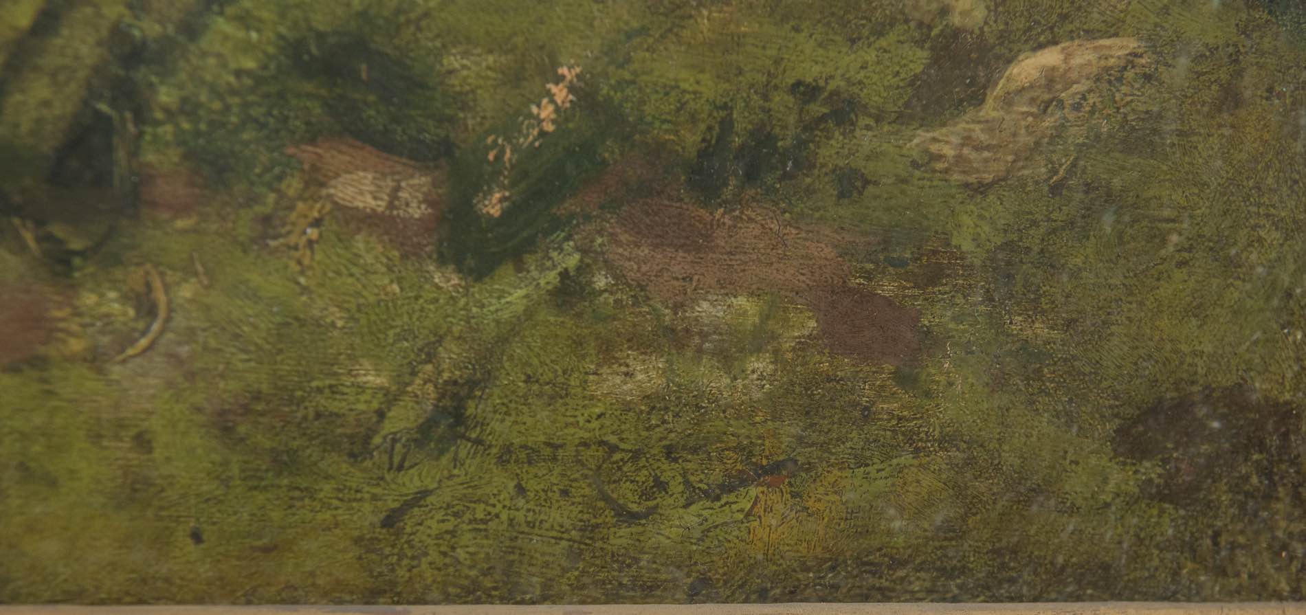 Pittore del XIX secolo, “Giovane con mucca”. - Olio su tela, reca tracce di firma in basso a destra, H cm 40x73