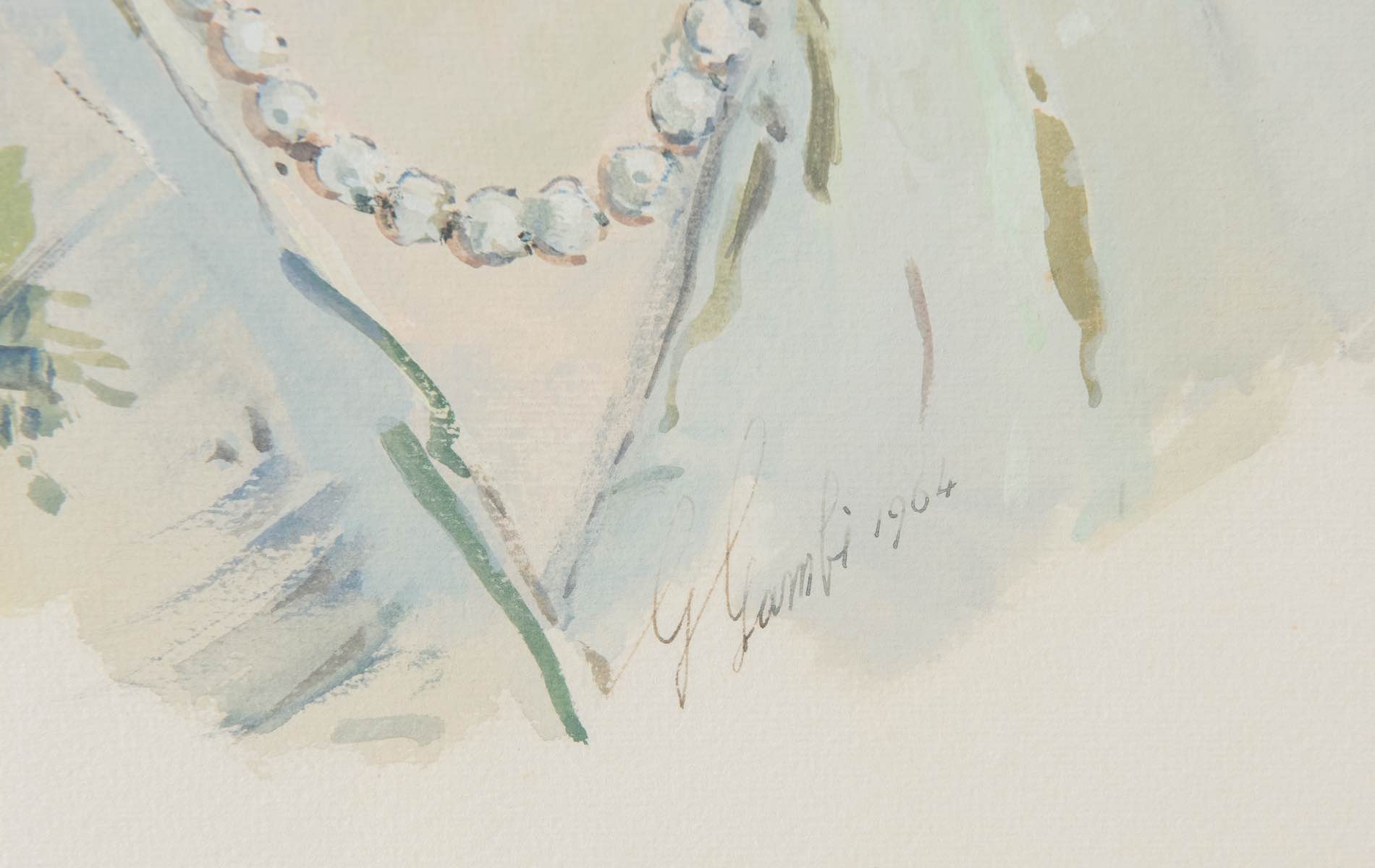 Gaspare Gambi (Ravenna 1889 - 1968), “Ritratto di signora”, 1964. - Acquerello su carta, firmato e datato in basso a destra G. Gambi 1964, H cm 49x37