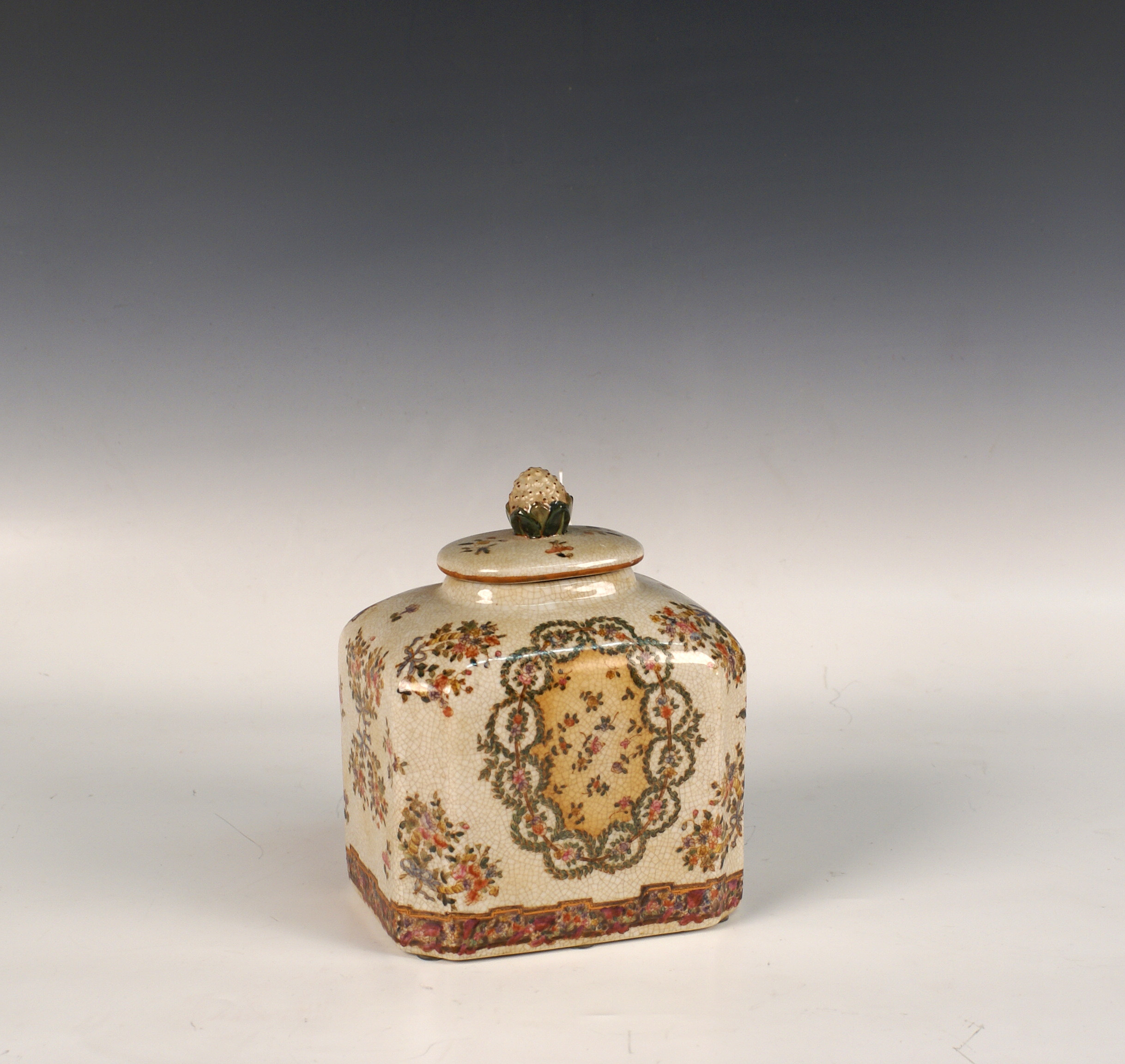 SCATOLA PORTA THE IN CERAMICA DIPINTA Inghilterra produzione recente 17x13x11 cm.