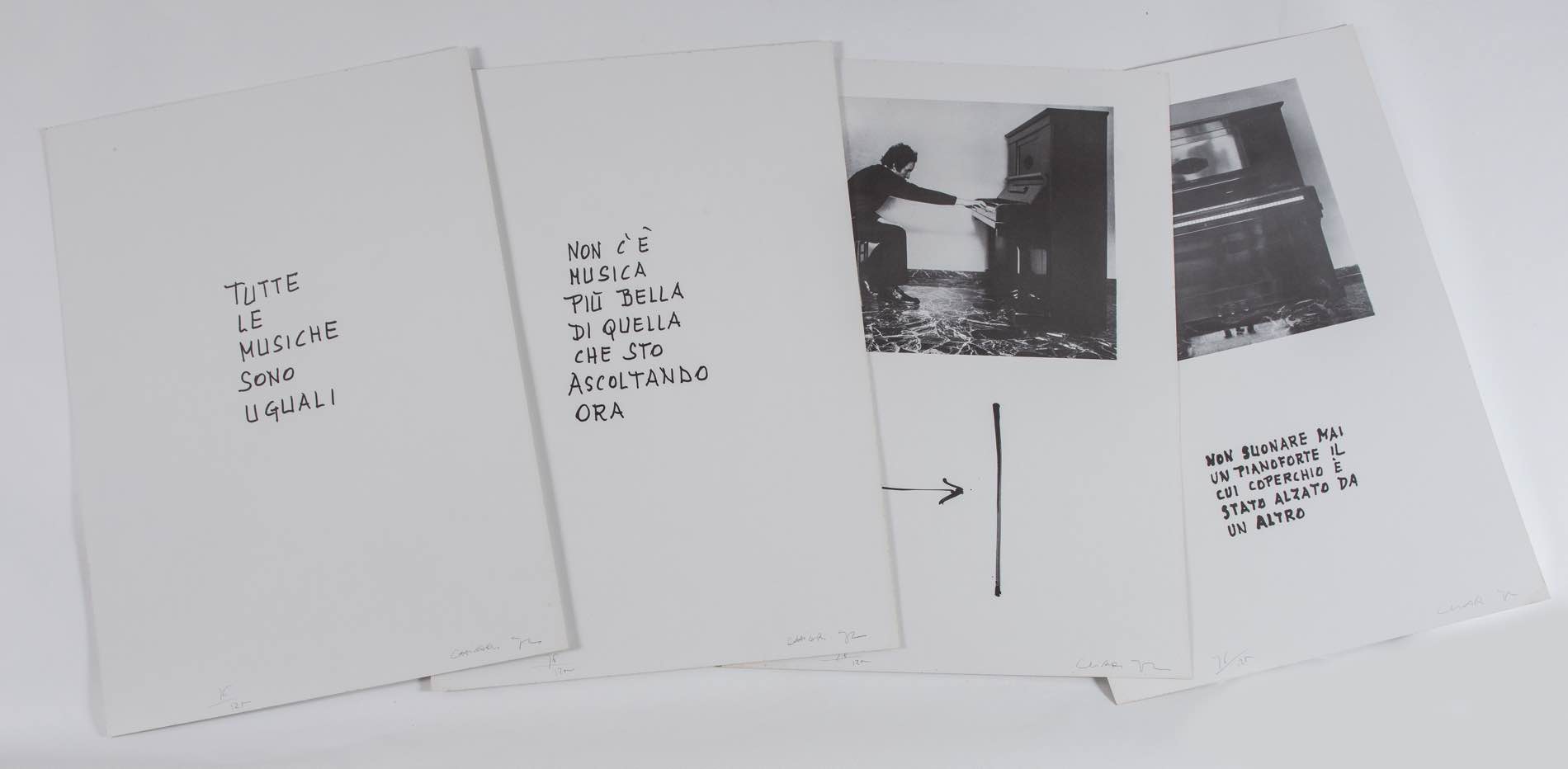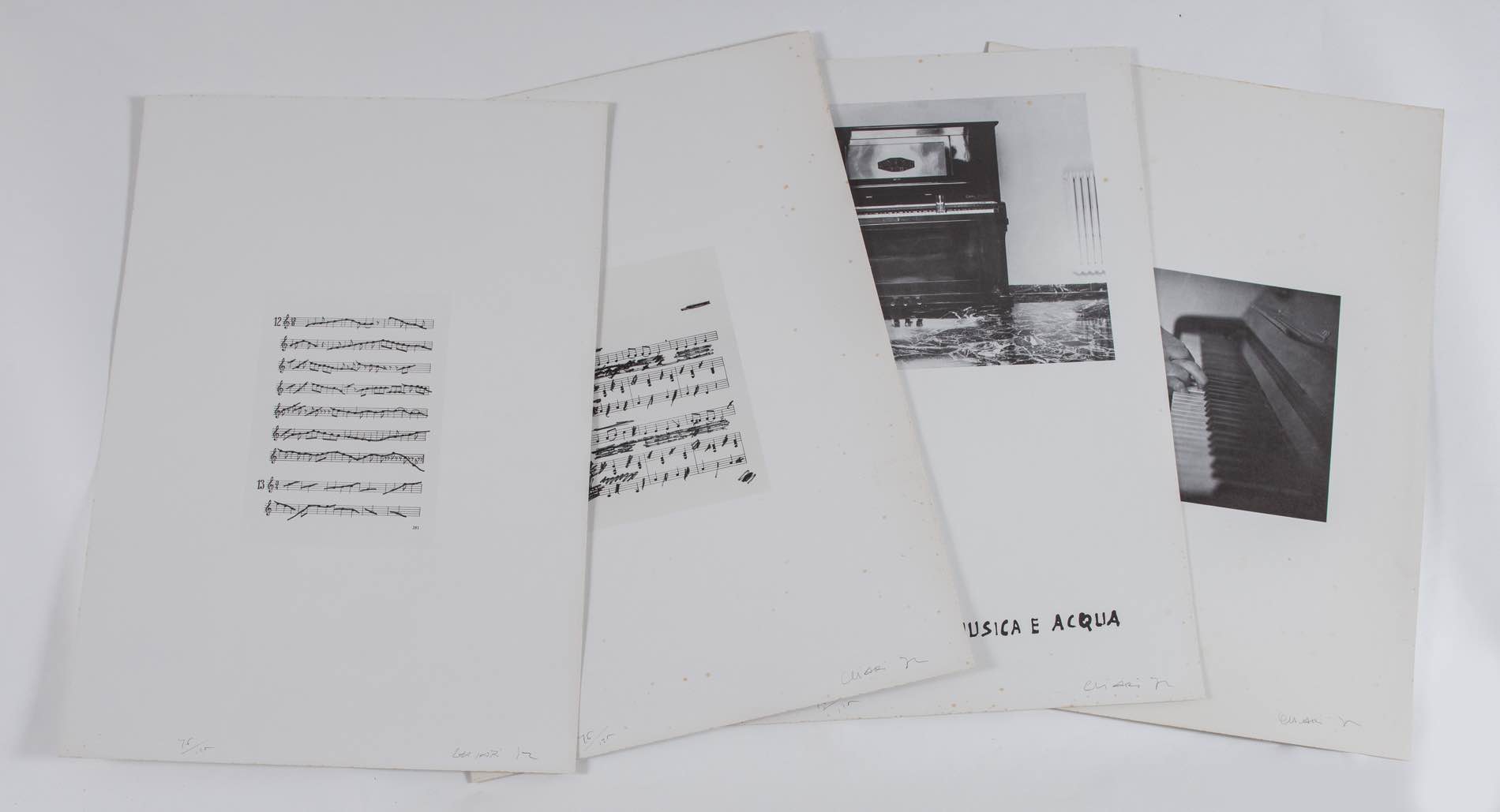Giuseppe Chiari (Firenze 1926 - 2007), “Senza titolo”. - Cartellina con 8 opere grafiche numerate e firmate dall’artista, stampate in 125 esemplari formato H cm 50x70, edizioni grafiche Artestudio Macerata Box 18, esemplare n. 76 - timbro a secco Artestudio Macerata, entro cartellina rigida.