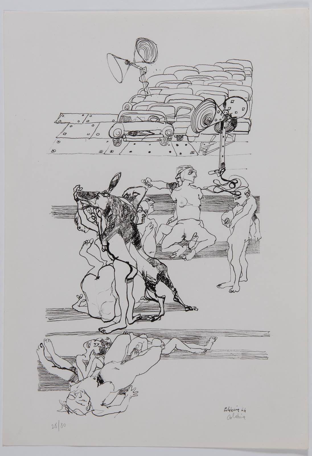 Ennio Calabria (Tripoli 1937), “Senza titolo”, 1964. - Litografia su carta, firmata in basso a destra Calabria, numero di tiratura in basso a sinistra 28/80, Foglio H cm 49x34.5