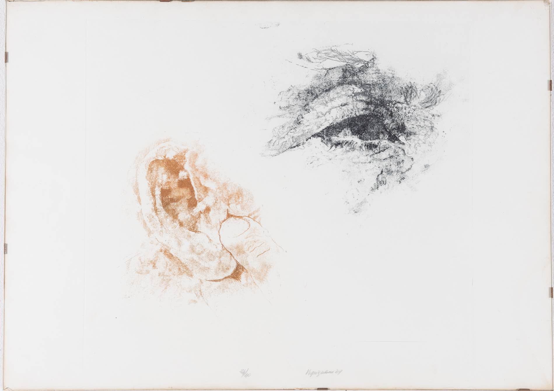 Renzo Vespignani (Roma 1924 - Roma 2001), “Occhio e Orecchio”, 1969. - Acquaforte su carta, firmata e datata in basso al centro Vespignani ‘69, numero di tiratura 24/40, Lastra H cm 44x50 - Foglio H cm 50x70