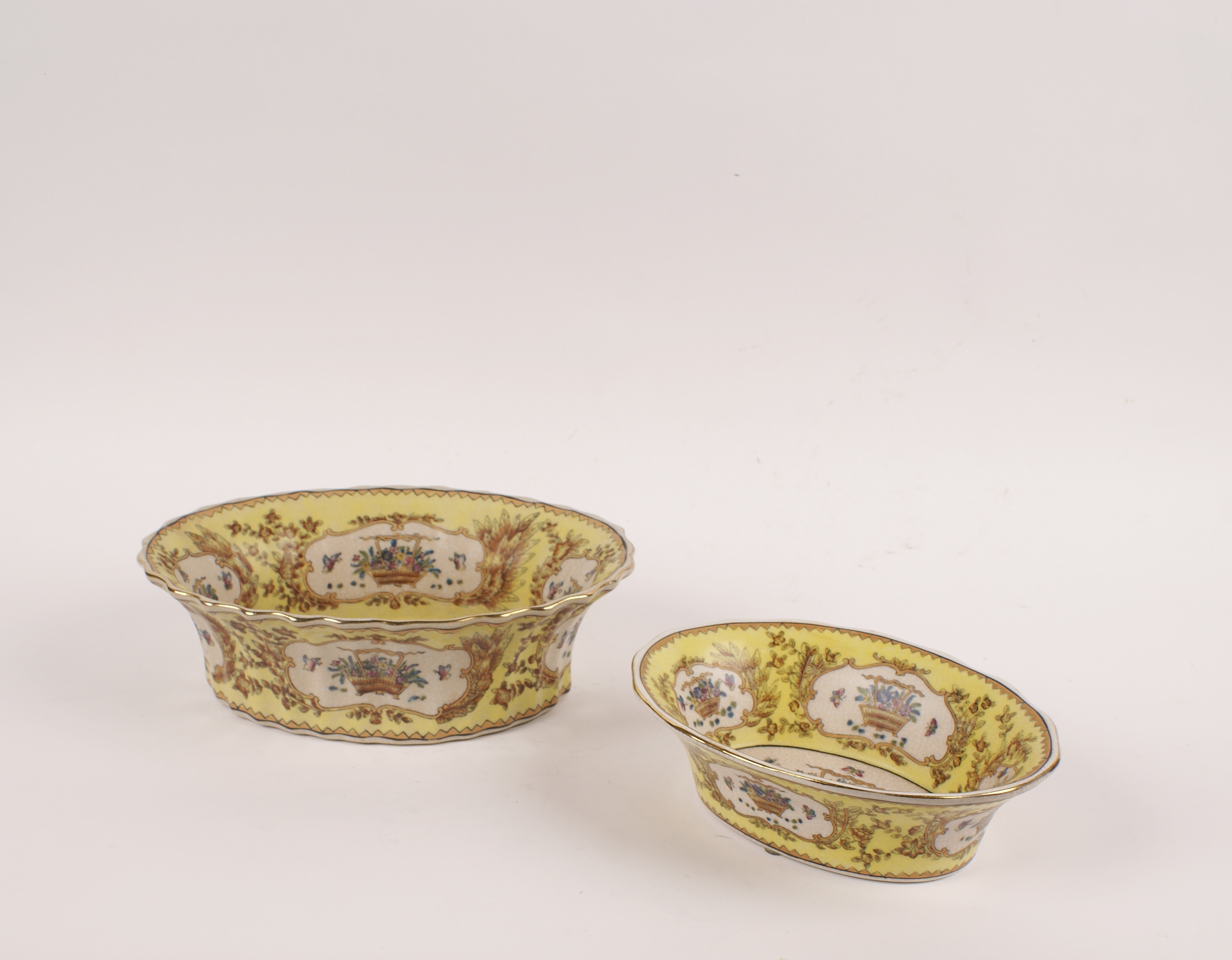 DUE CESTINI IN CERAMICA POLICROMA Inghilterra manifattura recente misure diverse