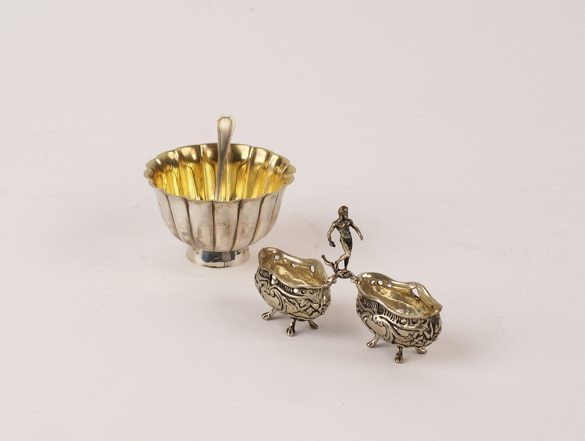 LOTTO IN ARGENTO manifattura italiana composto da due salierine, fogge e...