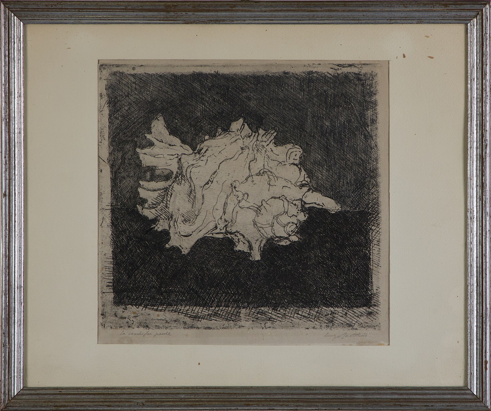 BARTOLINI LUIGI (1892 - 1963) La conchiglia grande. 1936. Acquaforte. Cm 29,00 x 29,00. Titolo e firma a matita in basso. Timbro a secco Luigi Bartolini Incisore in basso a destra. Dimensione lastra: 28x26,7 cm. Sitografia: https://www.luigibartolini.com/la-grande-conchiglia.html . Difetti. Cornice presente