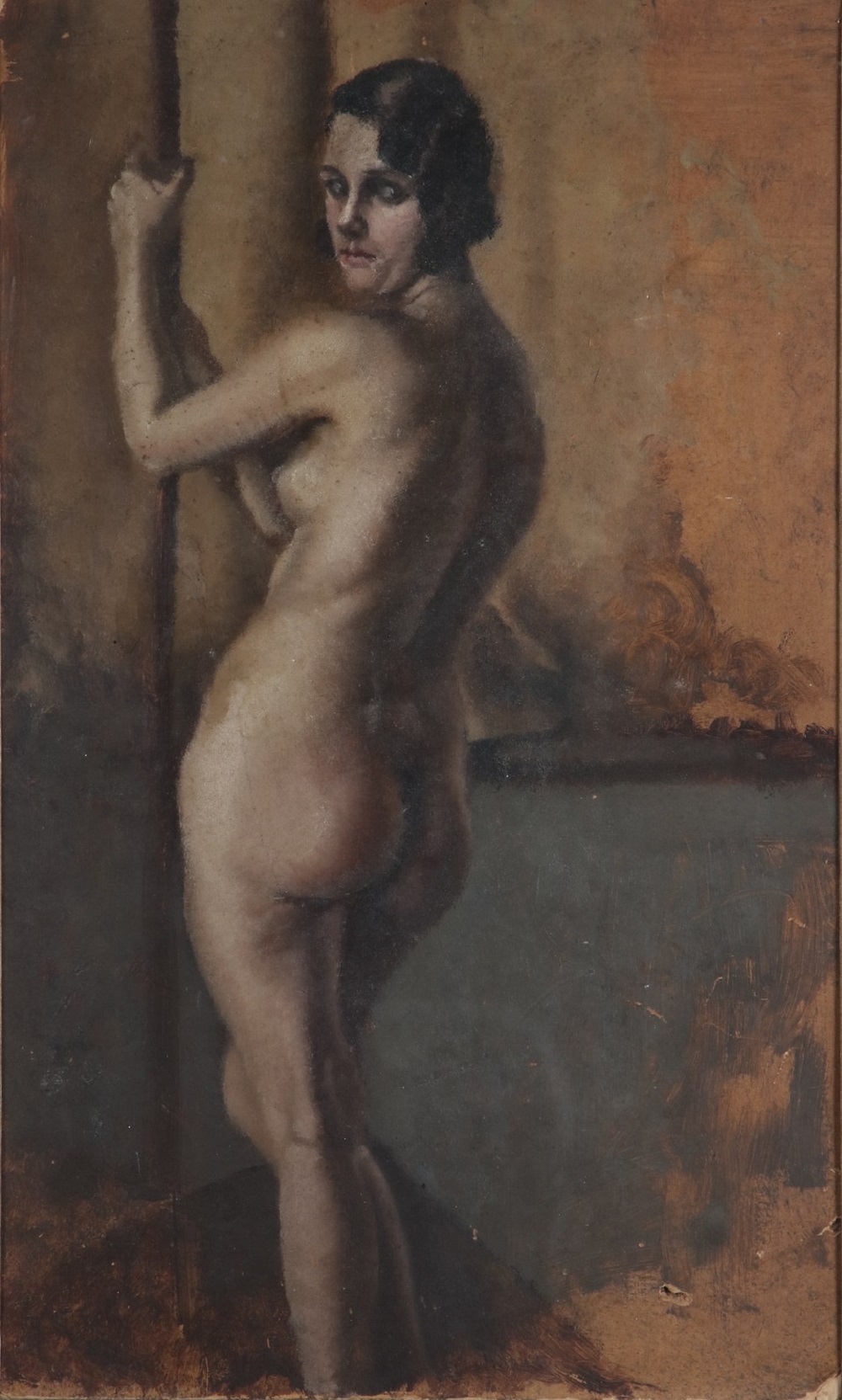 DUDREVILLE LEONARDO (1885 - 1976) Nudo. Olio su cartone pressato. Cm 32,00 x 53,50. Difetti. Cornice presente