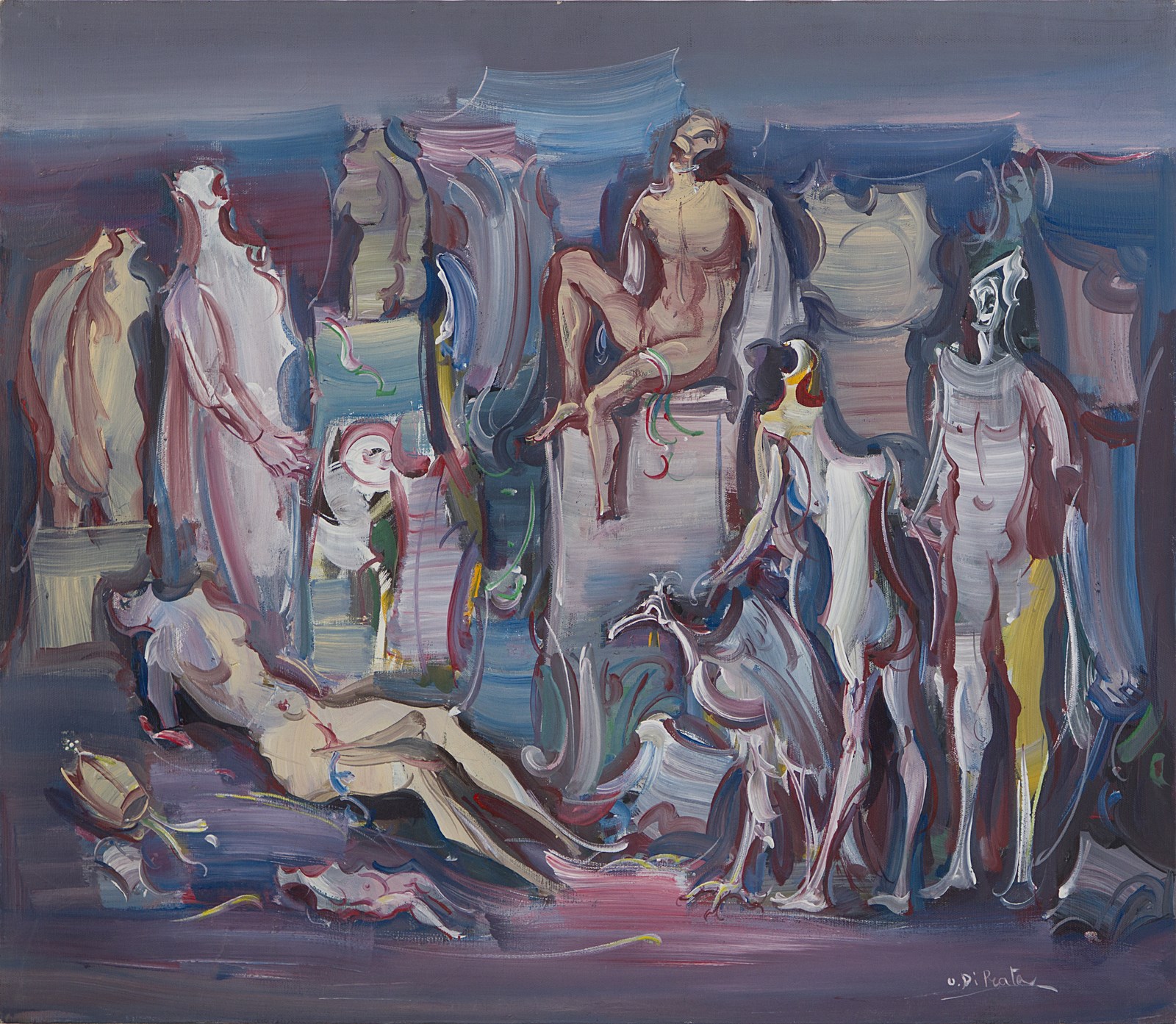 DI PRATA OSCAR (1910 - 2006) Senza titolo. Olio su tela . Cm 80,00 x 70,00. Firma e anno in basso a destra.