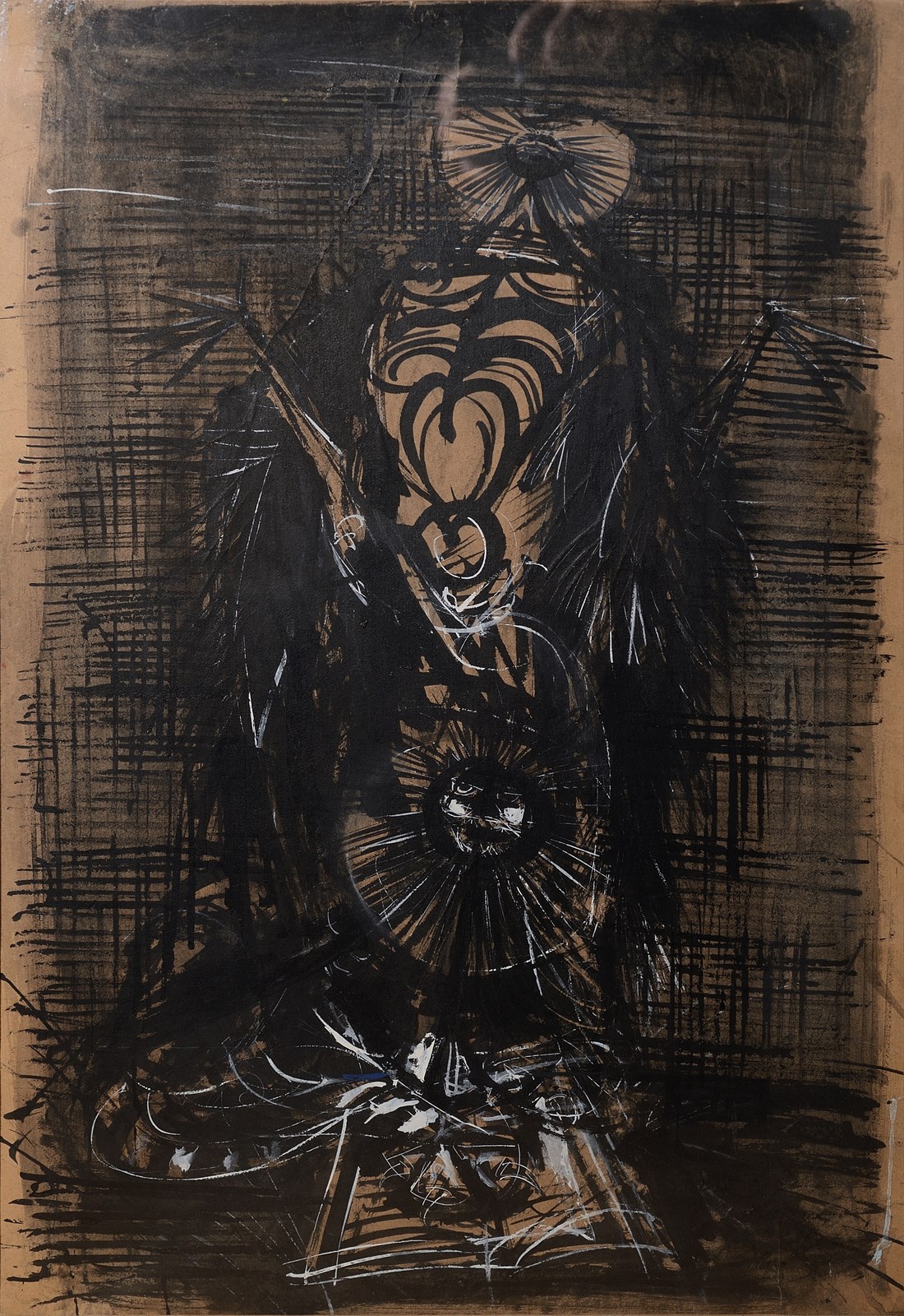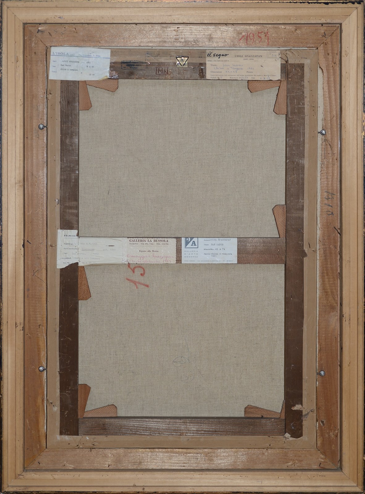 SPAZZAPAN LUIGI (1889 - 1958) San Marco. 1951. china e tempera su carta applicata su tela. Cm 49,00 x 74,00. Al retro etichette Galleria L'Isola. Galleria Il Segno Roma, Galleria La Bussola Torino, Kolniske Kunst, Colonia. 3A Galleria d'Arte Moderna, Torino. . Cornice presente