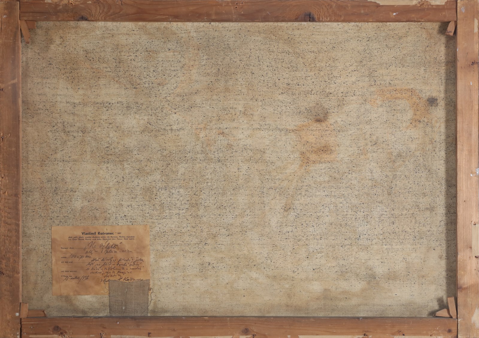 KOSVANEC VLASTIMIL (1887 - 1961) In estate. 1935. Olio su tela . Cm 70,00 x 100,00. Firma in basso a destra. Al retro cartiglio descrittivo. Le sue opere, di forte impatto coloristico, sono state oggetto di intenso interesse da parte di collezionisti un quarto di secolo dopo la sua morte. Nel panorama del XX secolo certi artisti erano considerati antiquati, derivati, indignati o addirittura non artistici. Questo ha causato la dimenticanza i certi artisti, come Vlastimil Kosvanec. Allievo del professor Vojtech Hynais presso l'Accademia di Praga negli anni 1907-1912, ha ricevuto da lui le migliori basi di formazione accademica, compresa la comunicazione subliminale sulla libertà della creazione artistica. Molte mostre, in Italia e all'estero sono state dedicate a questo artista. . Cornice presente