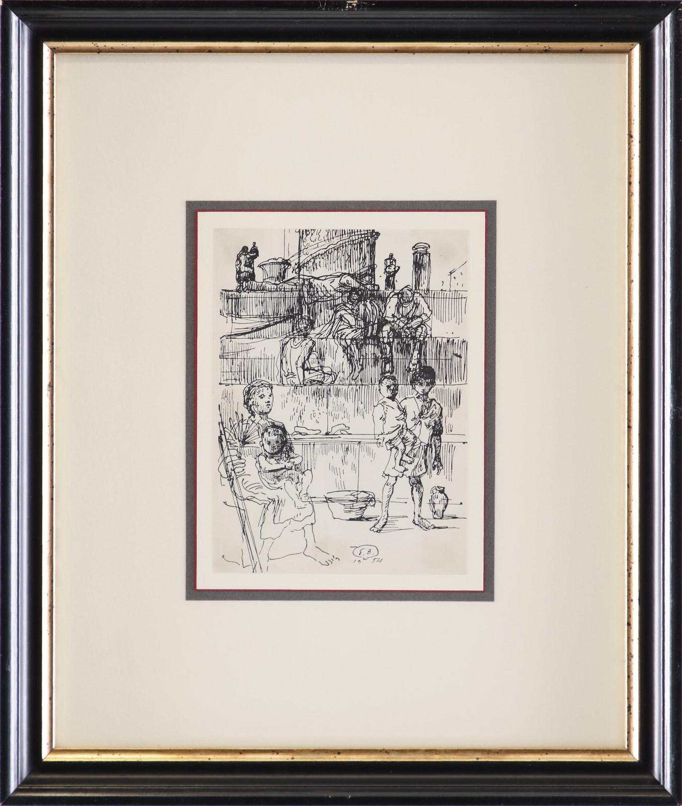BERMAN EUGENE GUSTAVOVITCH (1899 - 1972) Senza titolo. 1954. China su carta. Cm 16,00 x 21,80. Firma monogrammata e anno in basso al centro e al retro. Doppio disegno. Cornice presente