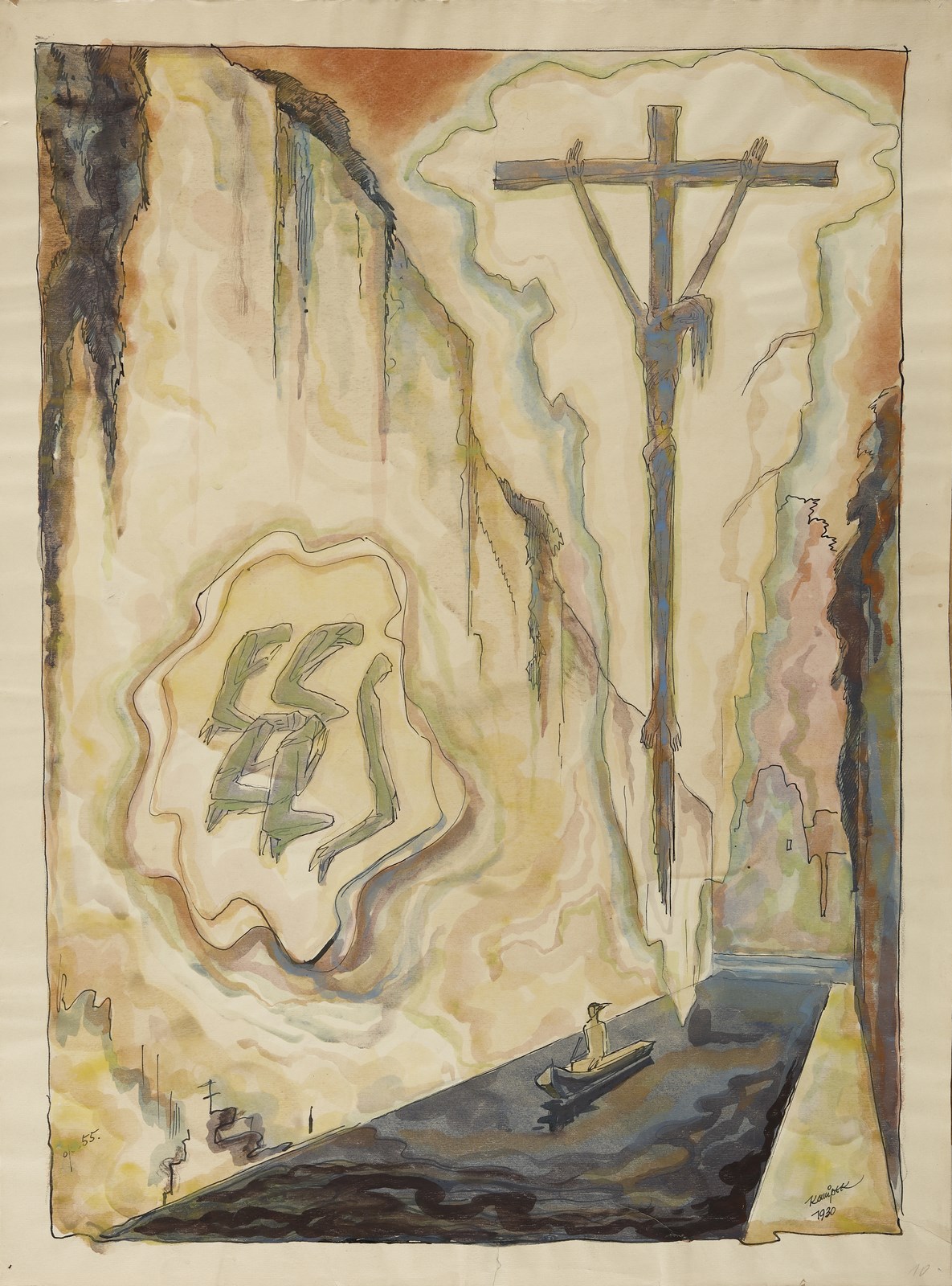 KONUPEK JAN (1883 - 1950) Senza titolo. Tecnica mista su carta. Cm 30,00 x 34,50. Firma e anno in basso a destra. Difetti.