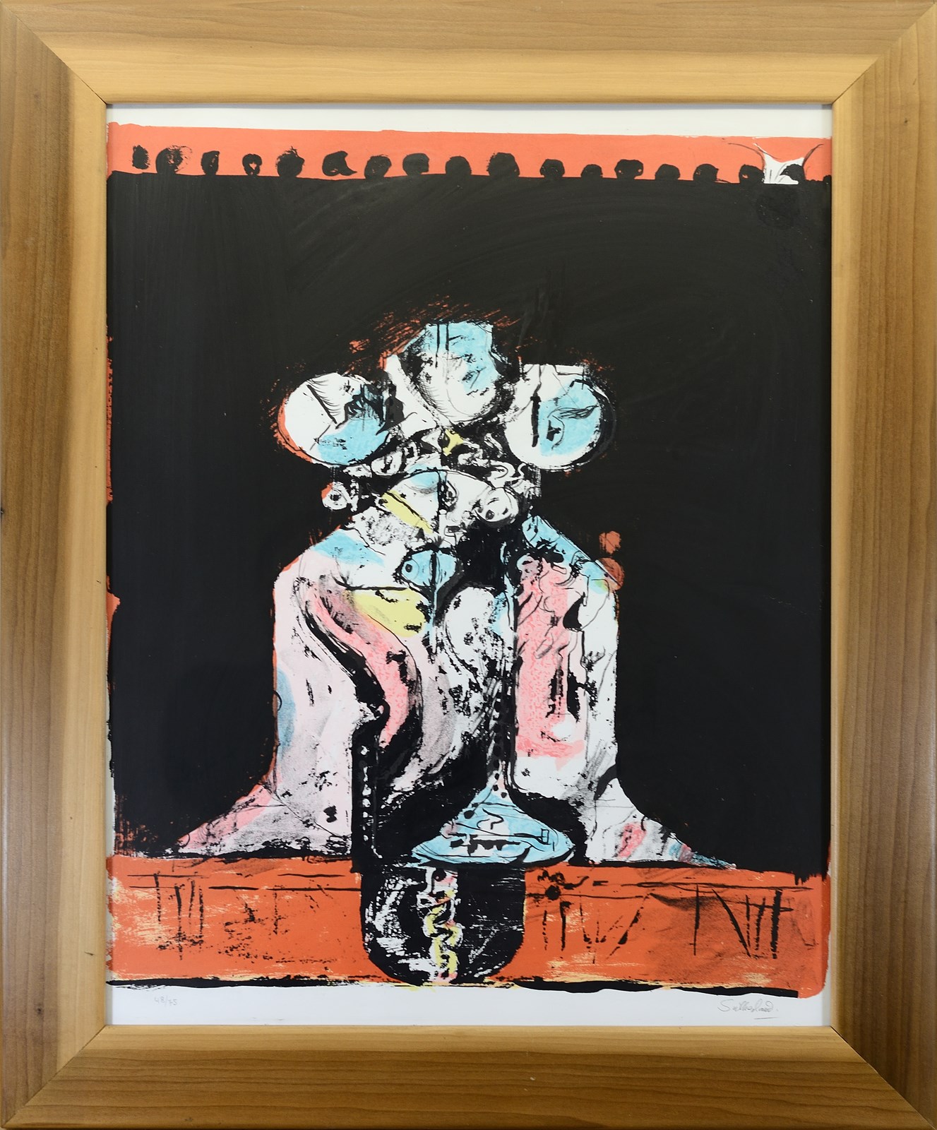 SUTHERLAND GRAHAM (1903 - 1980) Senza titolo. . Serigrafia. Cm 50,00 x 70,00. 48/75.Tiratura a matita in basso a sinistra. Firma a stampa in basso a destra. Timbro a secco in basso a destra.