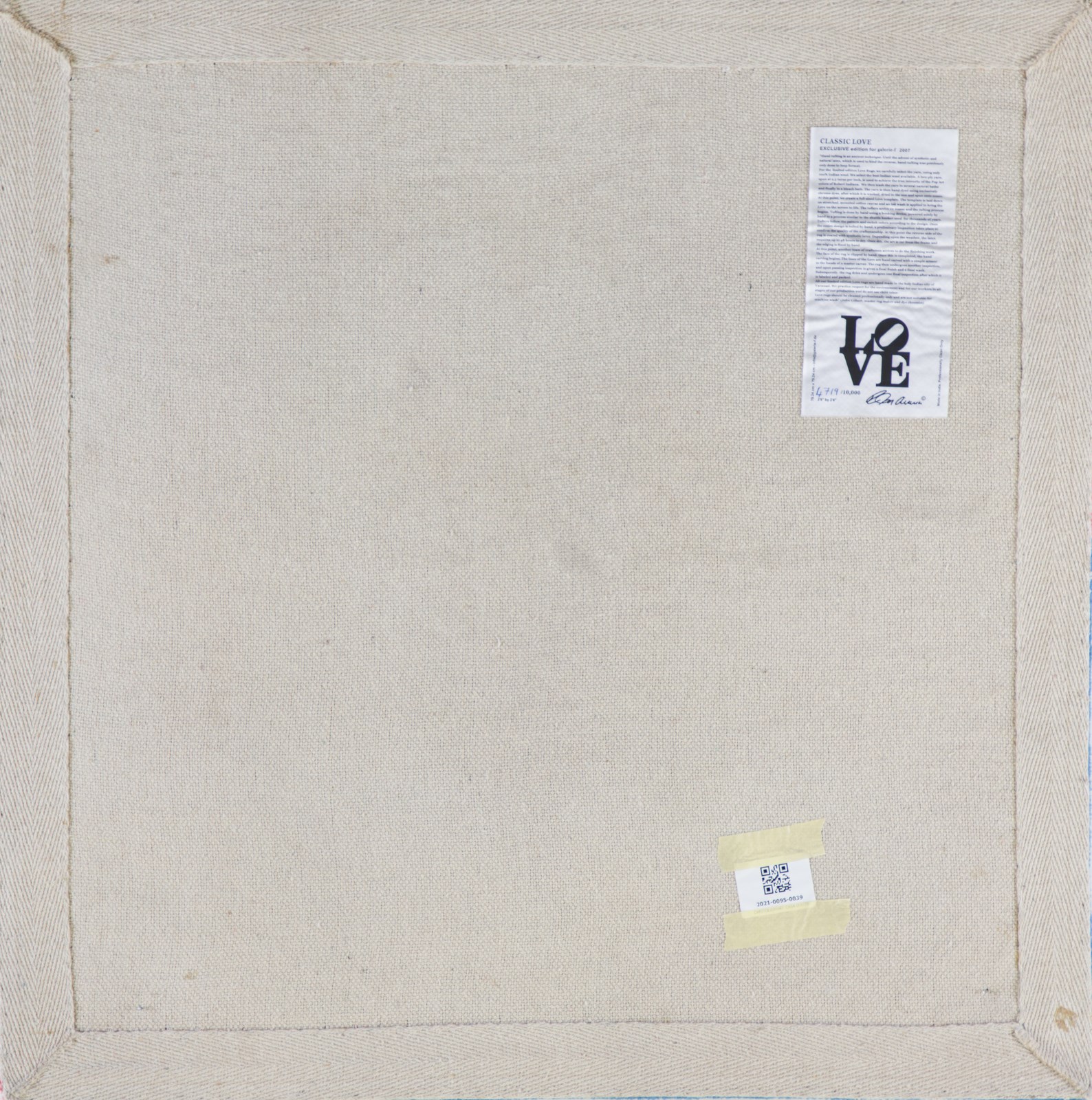 INDIANA ROBERT (1928 - 2018) Classic Love. 2007. Tappeto. Cm 77,00 x 77,00. 4719/10000. Al retro cartiglio con tiratura a penna e firma a stampa. Editore: Galerie -F, Kranesburg.