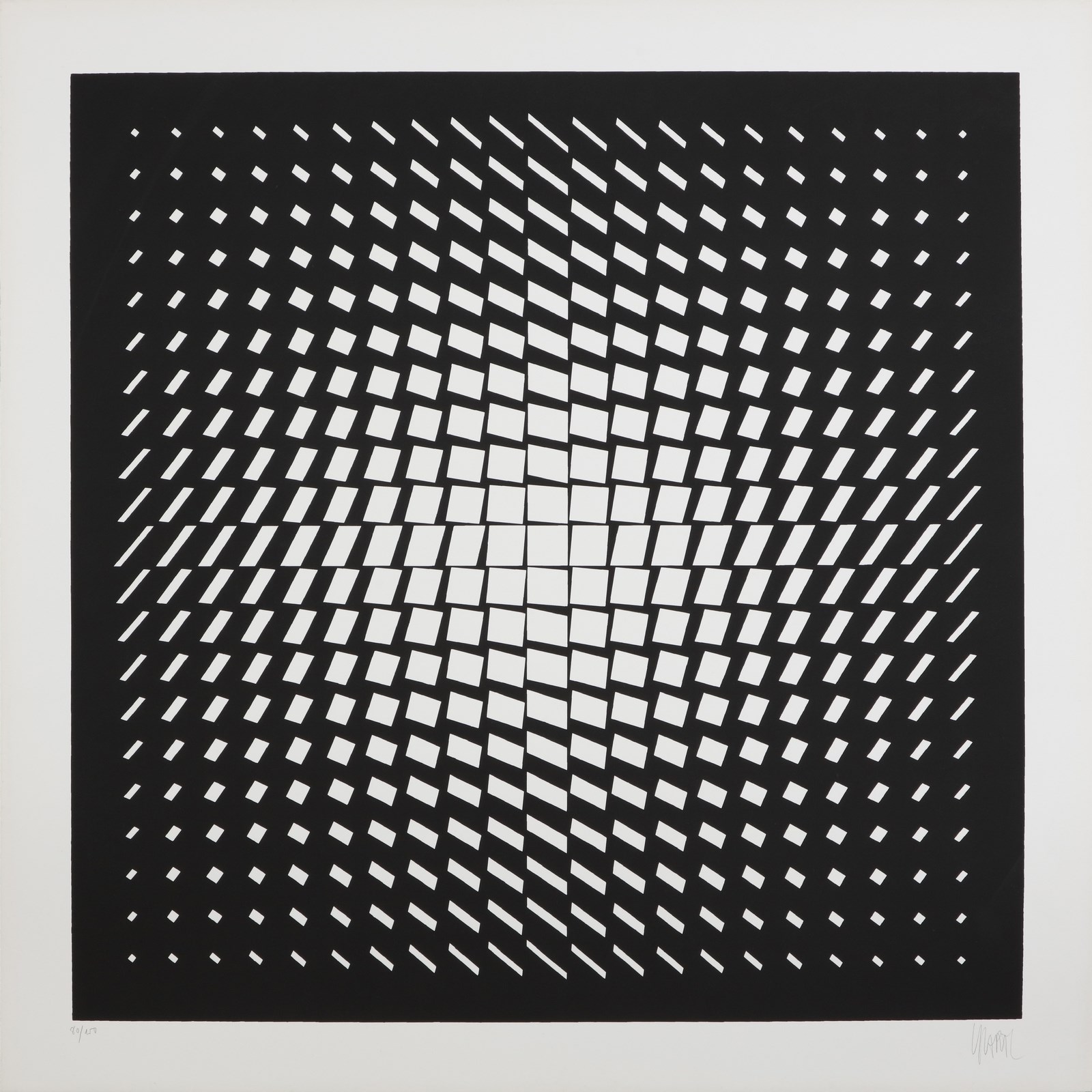 GRAV (Groupe de Recherche d'Art Visuel) Grav, Groupe de recherche d'art visuel 1960-1968. (6 fogli). Serigrafia (cartella completa). Cm 69,00 x 69,00. 80/150. Cartella realizzata in occasione della mostra retrospettiva, Lago di Como, 20/30 settembre 1975 a cura di Luciano Caramel del Groupe de Recherche d'Art Visuel ( Garcia Rossi, Le Parc, Morellet, Sobrino, Stein, Yvaral). Tutte le opere presentano firma e tiratura in basso a matita. Editore: Galleria Team Colore, Milano. Stampatore: Sam Villa, Milano. Presenti difetti. Cartella contenitiva in cartone originale e colophon.