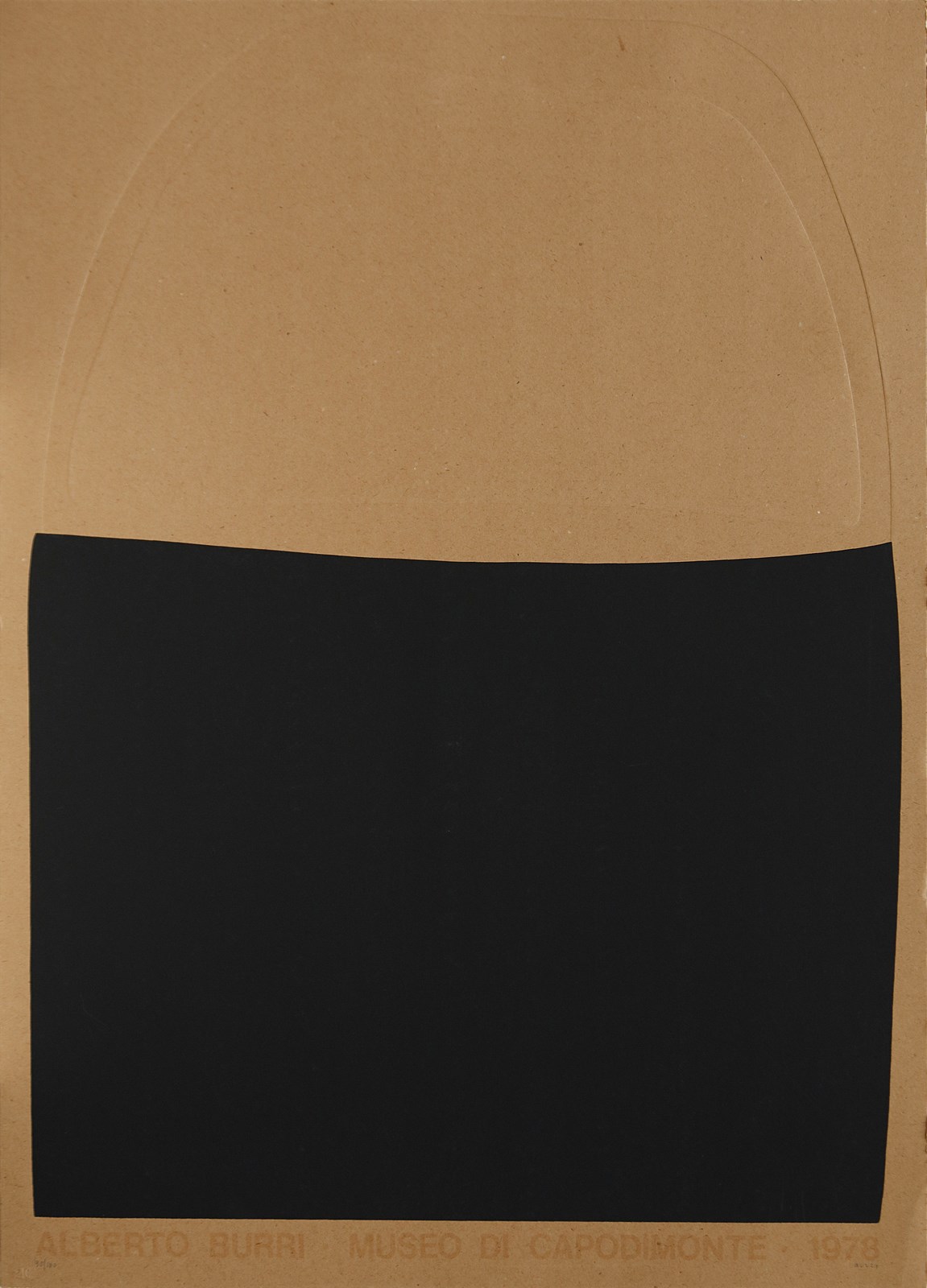 BURRI ALBERTO (1915 - 1995) Senza titolo. Acquaforte e serigrafia. Cm 64,00 x 89,00. 90/100. Tiratura e firma in basso a matita. Timbro a secco 2Rc in basso a sinistra. Dimensione lastra: 84x58 cm. Edizione completa: 100 + 10 p.a.