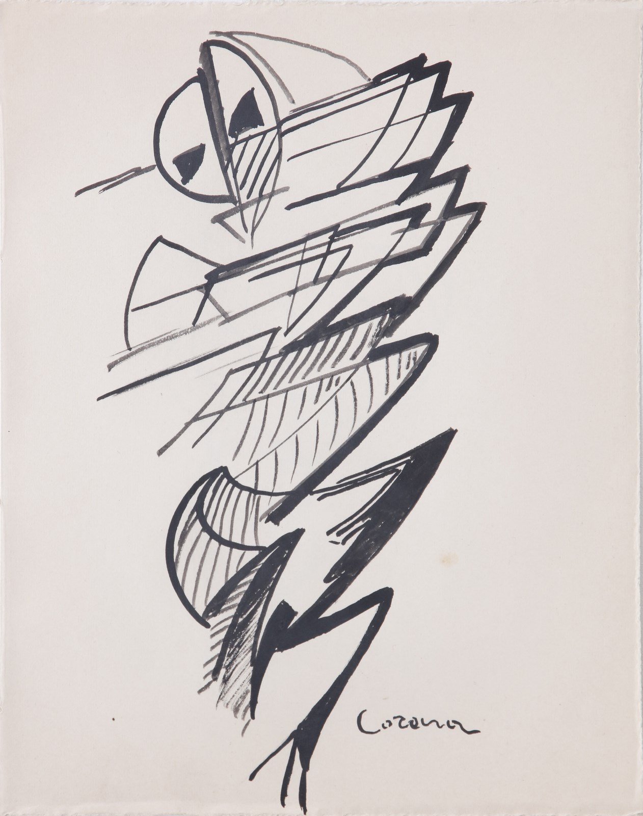 CORONA VITTORIO (1901 - 1966) Senza titolo. Tecnica mista su carta. Cm 17,00 x 22,00. Opera retro dipinta. Firma in basso a destra. Autentica su fotografia di Anna Maria Ruta. Pubblicazione: La Ricerca nel Segno - Vittorio Corona futurista Siciliano a cura di Maria Cristina Funghini e Anna Maria Ruta, Novembre - Dicembre 2009.