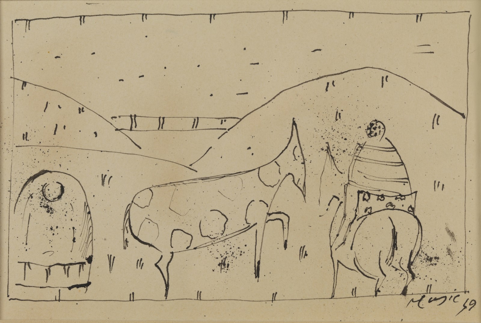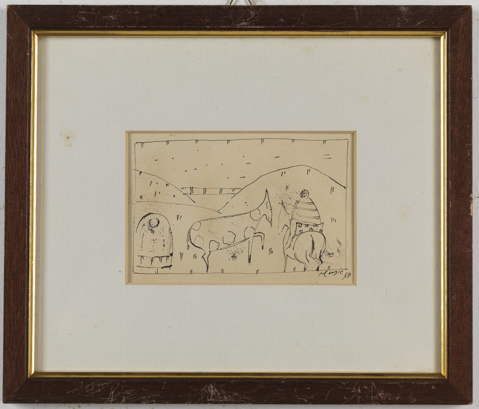 MUSIC ANTONI ZORAN (1909 - 2005) Senza titolo. 1949. Tecnica mista su carta. Cm 15,00 x 10,00. Firma e anno in basso a destra. Cornice presente