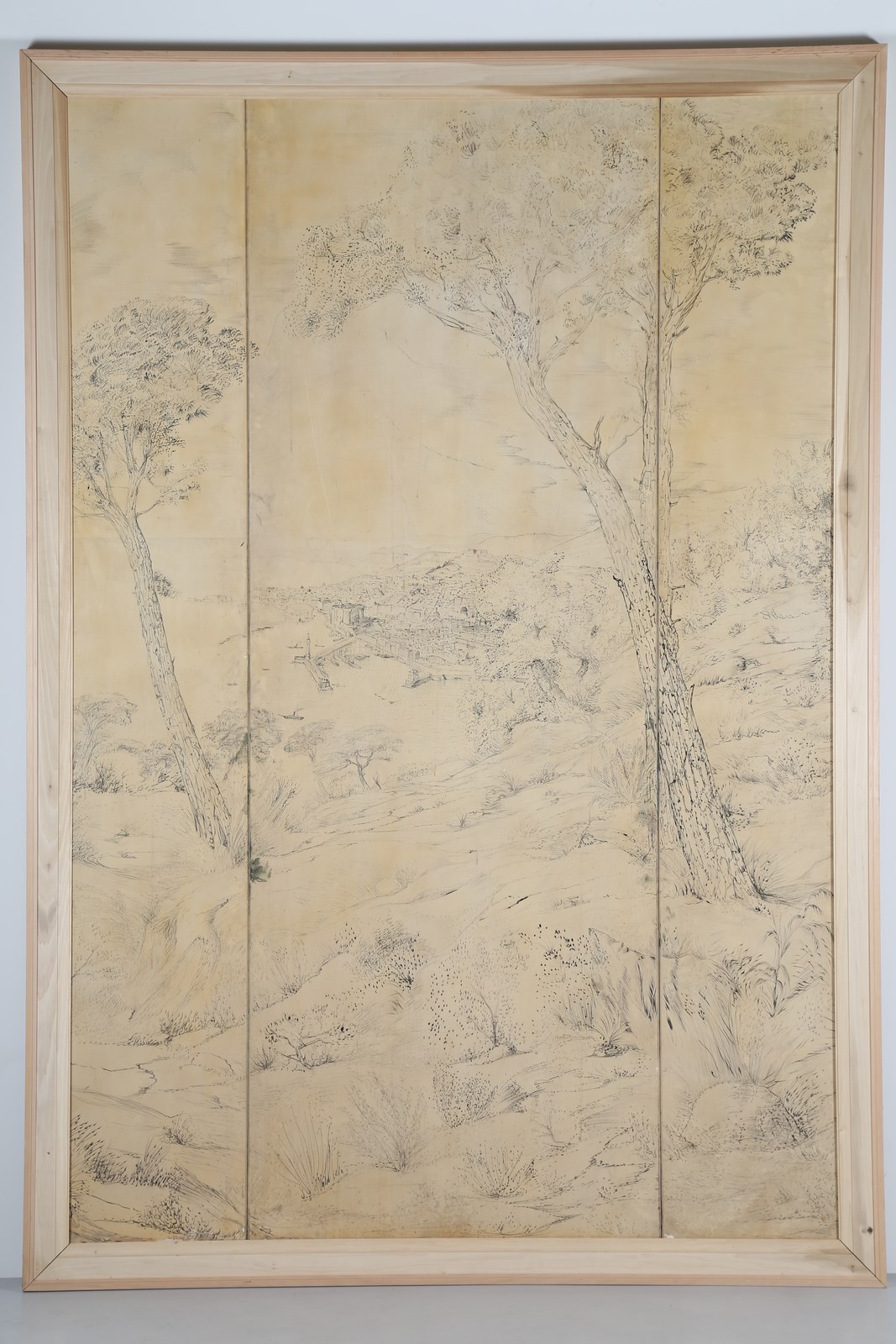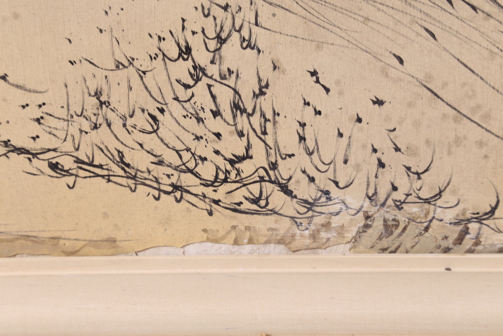SASSU ALIGI (1912 - 2000) Senza titolo. Tecnica mista su tavola. Cm 201,00 x 290,00. Provenienza: dimora milanese il cui arredamento era stato commissionato ad Osvaldo Borsani. L' Opera è archiviata presso l'Archivio Carlos Sassu Suarez ( copia tramite e-mail).