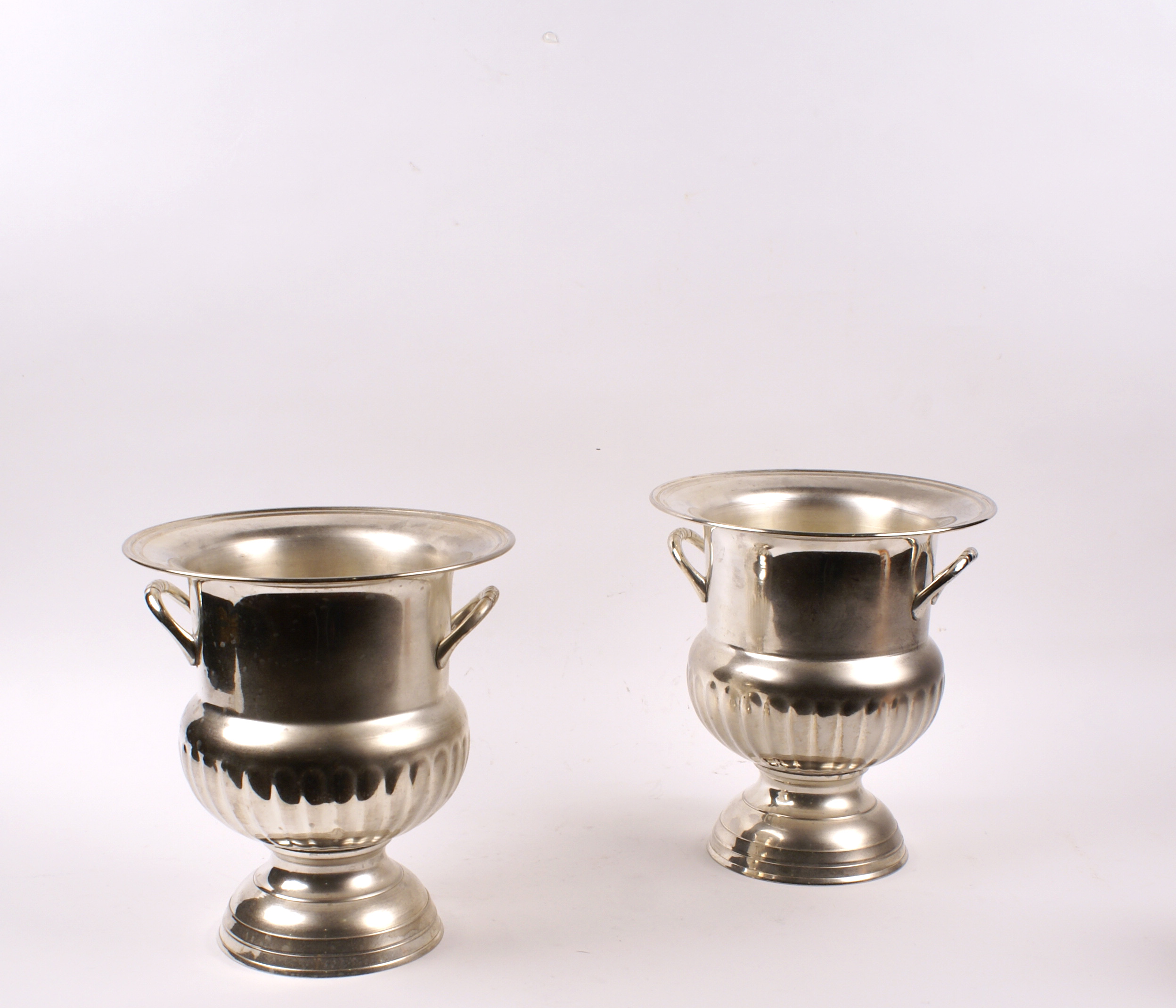 COPPIA DI SECCHIELLI PORTA CHAMPAGNE IN SHEFFIELD Inghilterra manifattura recente h. 25 cm.