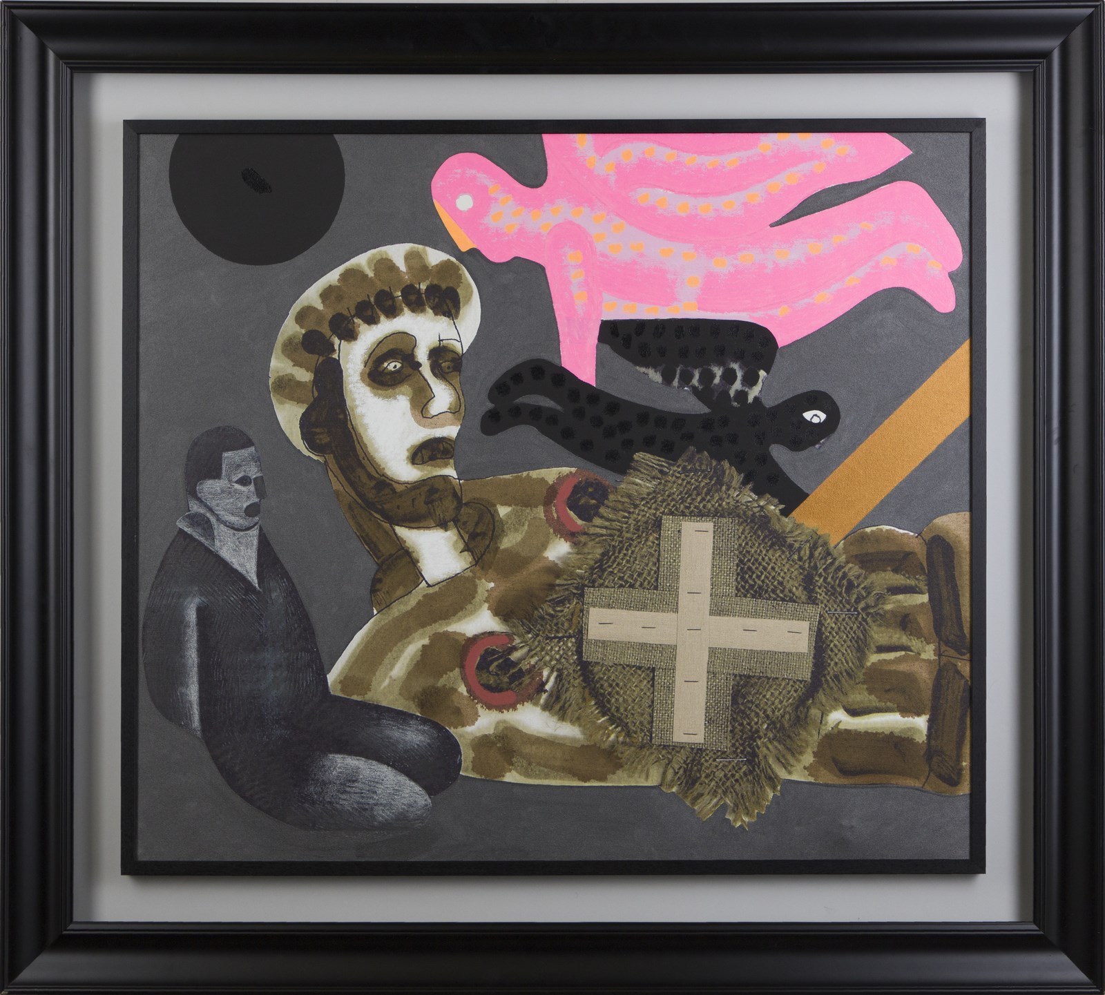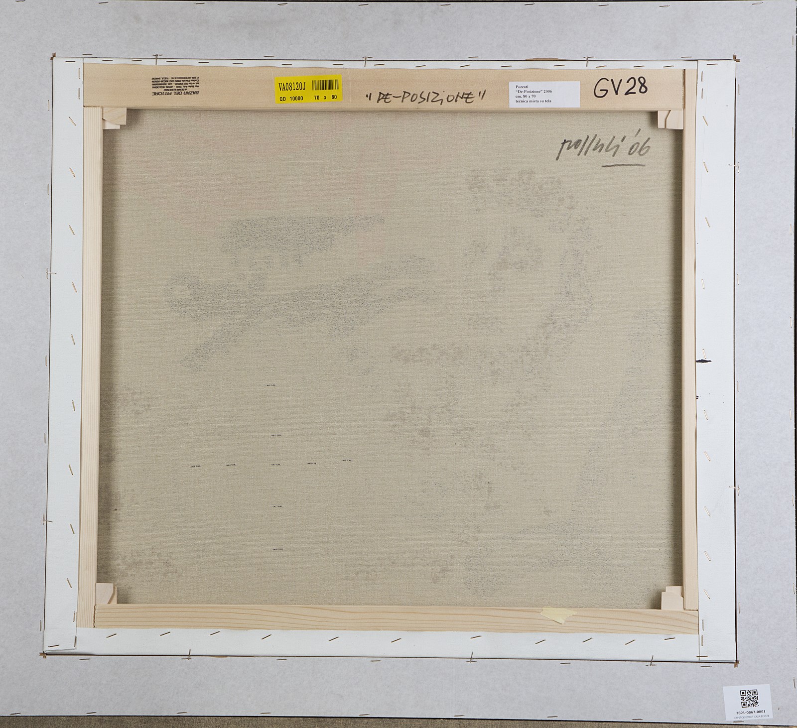 POZZATI CONCETTO (n. 1935) De- posizione. 2006. Smalti su tela. Cm 80,00 x 70,00. Al retro titolo, firma e anno. Autentica dell'artista su fotografia riportante il relativo numero d'inventario. Certificato di autenticità Telemraket, Roncadelle. . Cornice presente