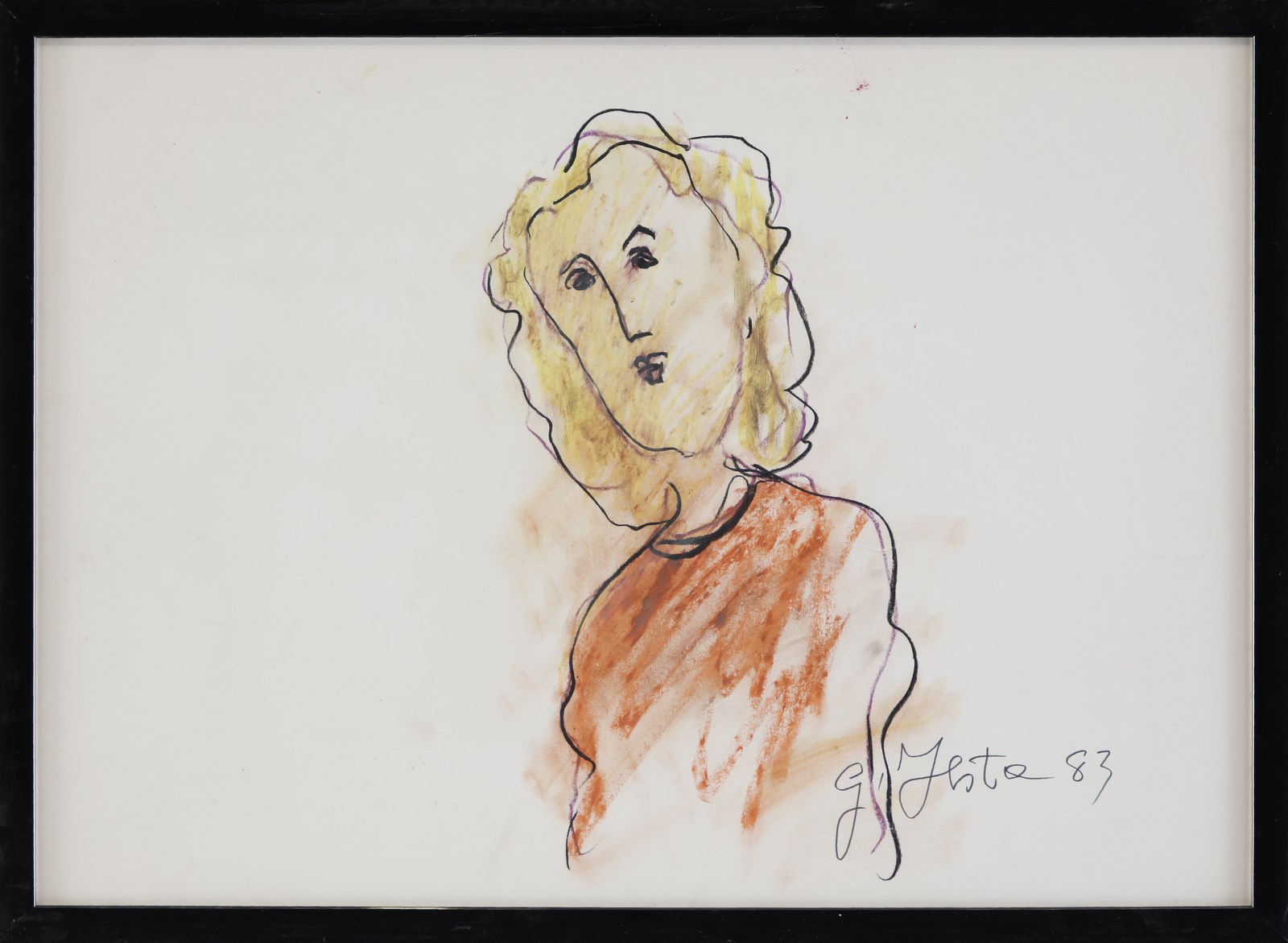 FESTA TANO (1938 - 1988) Senza titolo. 1983. Tecnica mista su carta. Cm 70,00 x 50,00. Firma e anno in basso a destra. Opera archiviata presso l'Archivio Tano Festa - Studio Soligo, Roma, come da documentazione fotografica allegata all'opera riportante il relativo numero d'inventario. Cornice presente