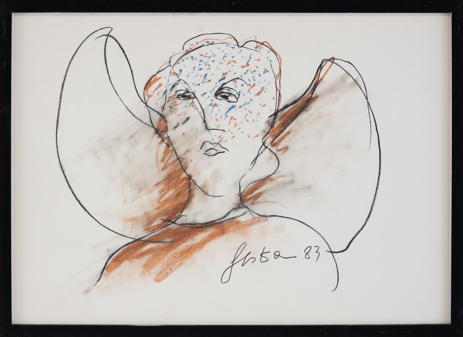 FESTA TANO (1938 - 1988) Senza titolo. 1983. Tecnica mista su carta. Cm 70,00 x 50,00. Firma e anno in basso a destra. Opera archiviata presso l'Archivio Tano Festa - Studio Soligo, Roma, come da documentazione fotografica allegata all'opera riportante il relativo numero d'inventario. Cornice presente