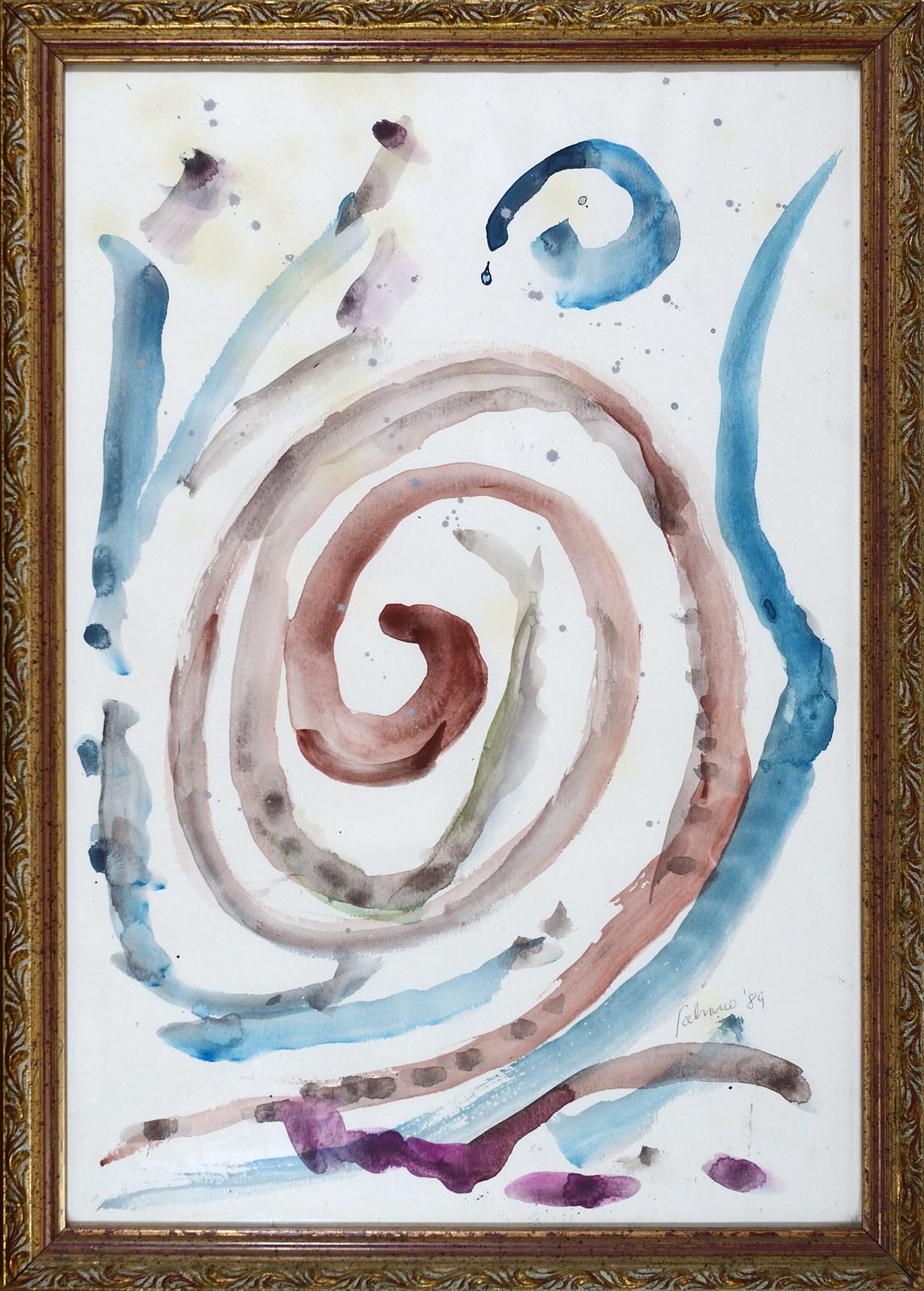 GALVANO ALBINO (1907 - 1991) Composizione. 1989. Acquerelli su carta. Cm 32,00 x 47,00. Firmato e datato in basso a destra. Autrentica su foto. . Cornice presente