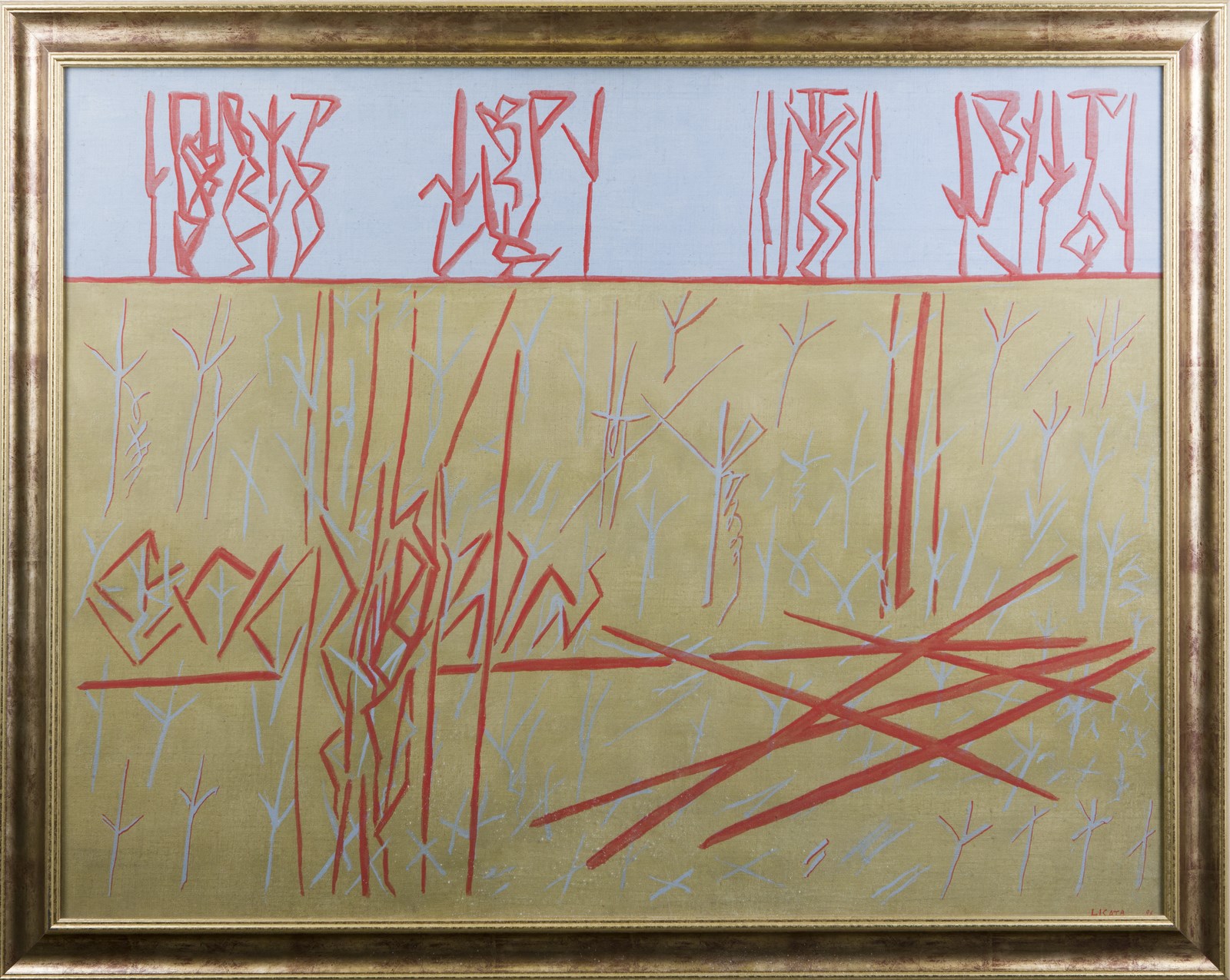 LICATA RICCARDO (1929 - 2014) Senza titolo. 1986. Olio su tela . Cm 115,00 x 90,00. Firma e anno in basso a destra. Autentica dell'artista su fotografia. Certificato di garanzia Gallerie d'arte Orler. Provenienza: Gallerie d'arte Orler. Collezione privata, Roma. Cornice presente